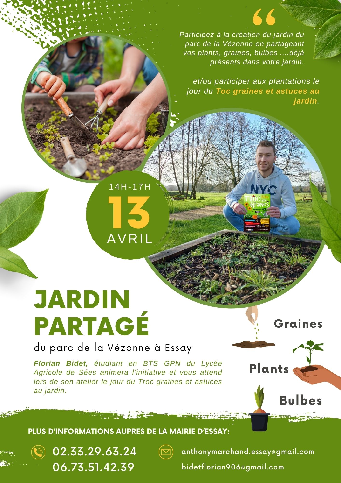 - Création du jardin partagé du parc de la Vézonne avec les familles du territoire et le centre de loisirs https://www.facebook.com/villedessay/videos/2727473607422168?locale=fr_FR |