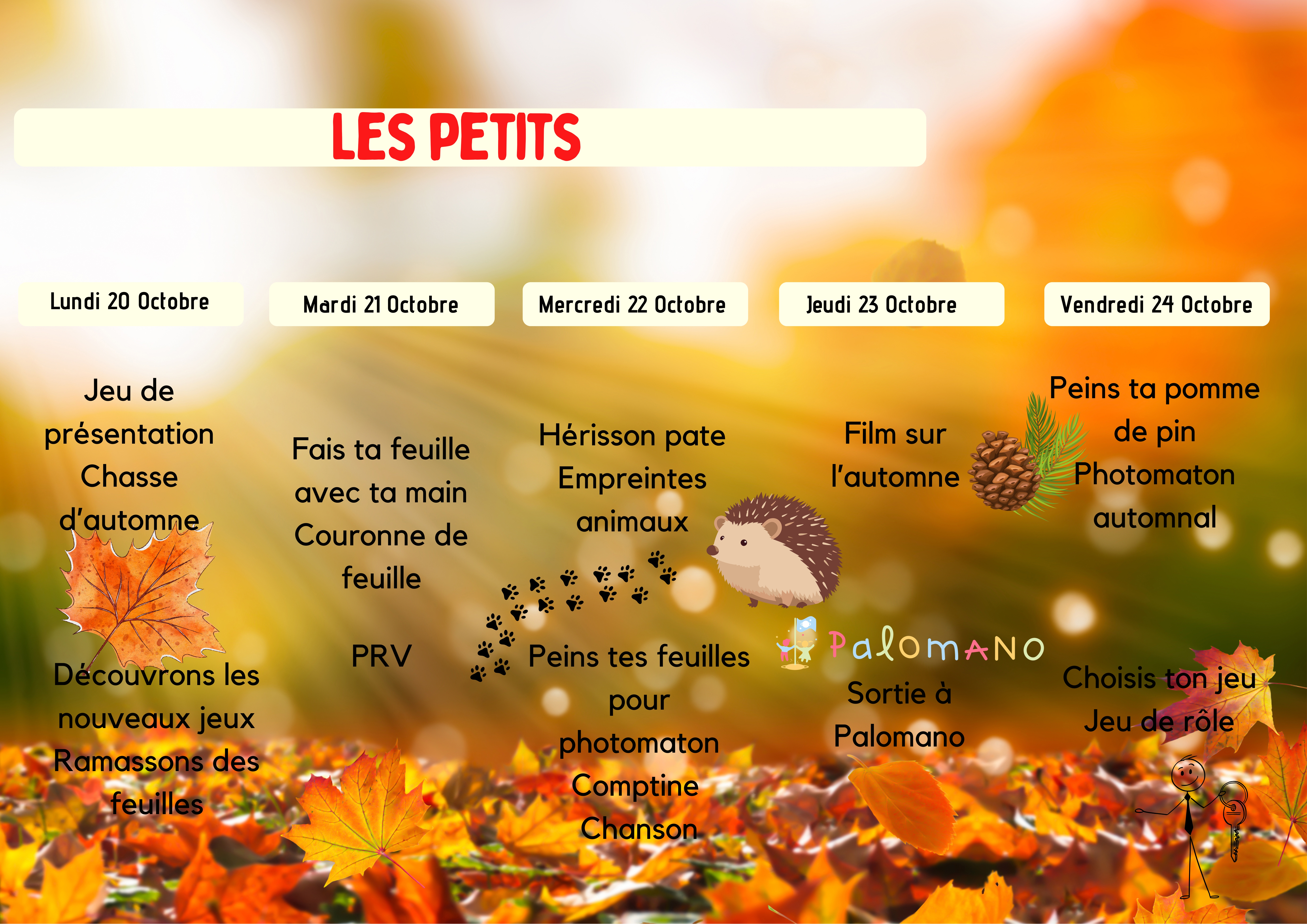 Présentation Inscription Tarifs Programmes des Vacances de la Toussaint RETROUVER LES PROGRAMMES DES 2 SEMAINES DE VACANCES POUR CHAQUE GROUPE DANS L'ONGLET CORRESPONDANT AU GROUPE DE VOTRE ENFANT LES PETITS LES MOYENS LES GRANDS