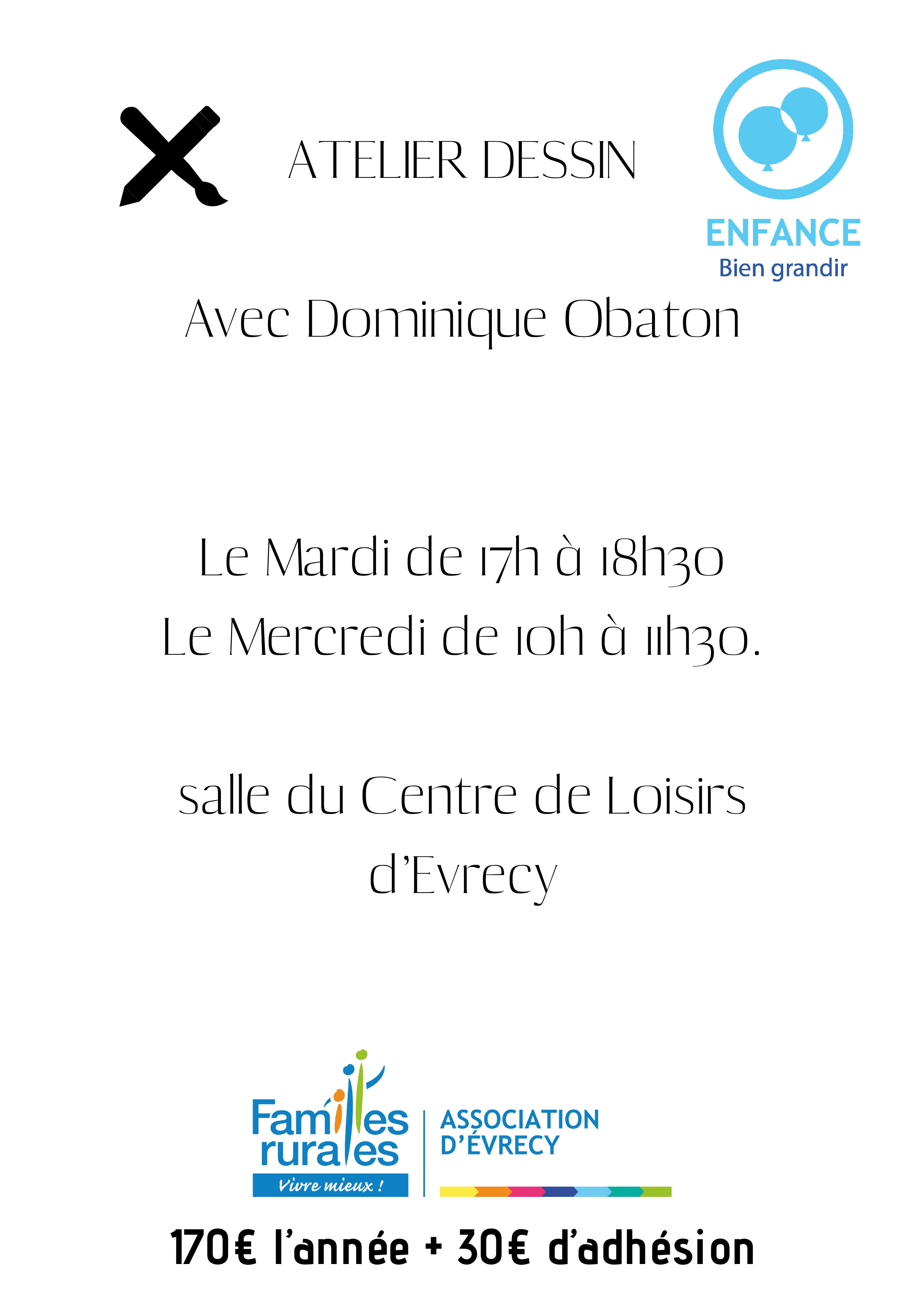 6-12 ans Mardi de 17h à 18h30 au Centre de Loisirs d’Evrecy et le Mercredi de 10h à 11h30.