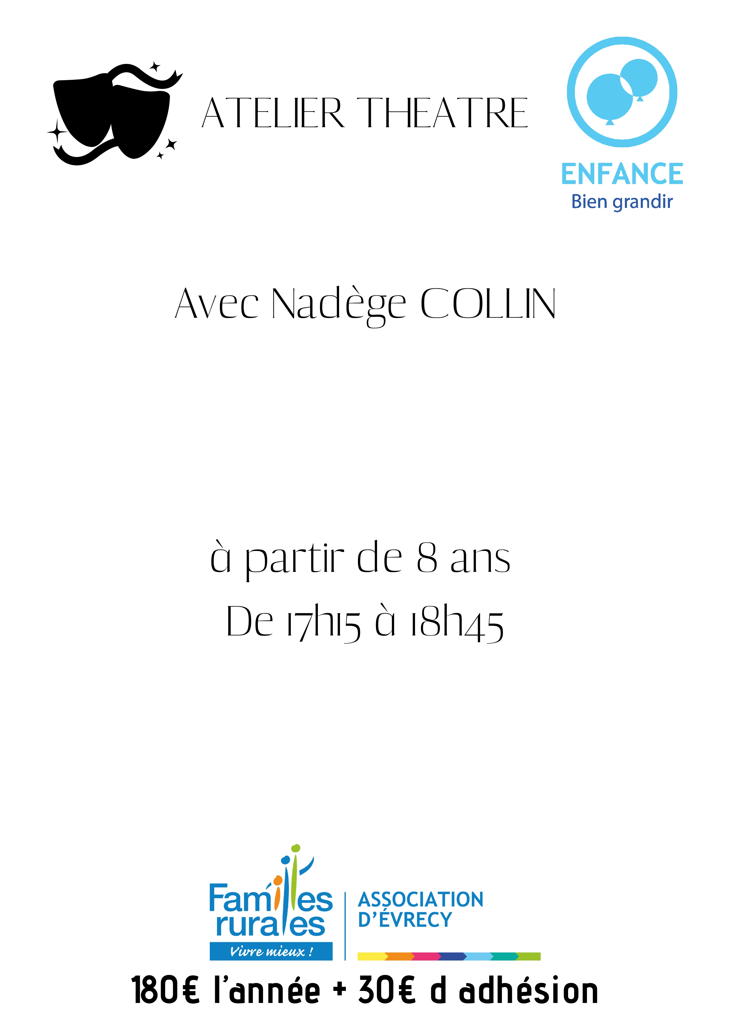 L'atelier théâtre proposé est basé sur un expérience collective de communication, d'échanges afin de favoriser le développement personnel chez l'enfant (développer sa confiance en soi dans le respect de l'autre, favoriser la prise de parole en public, conscience du corps, travail sur la vois, écoute des propositions des autres lors des jeux de rôles, développer son imaginaire et sa créativité structurer une pensée pour la mettre en jeu...)