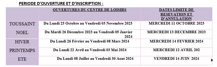 LES INSCRIPTIONS POUR L'ETE SONT DE 3 JOURS MINIMUM PAR SEMAINE