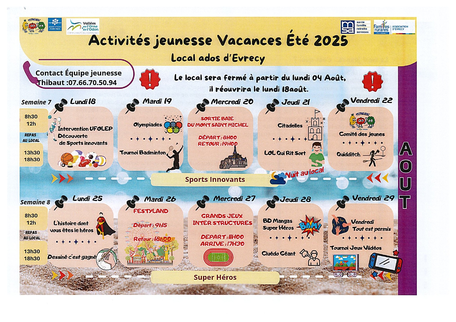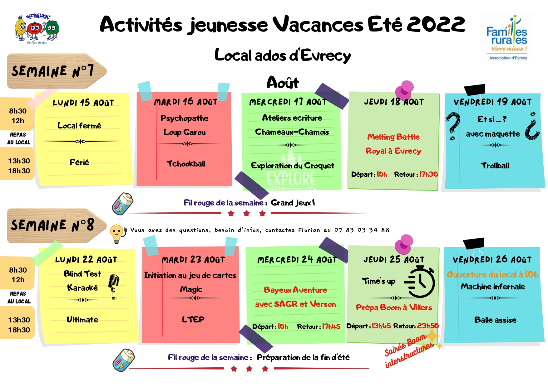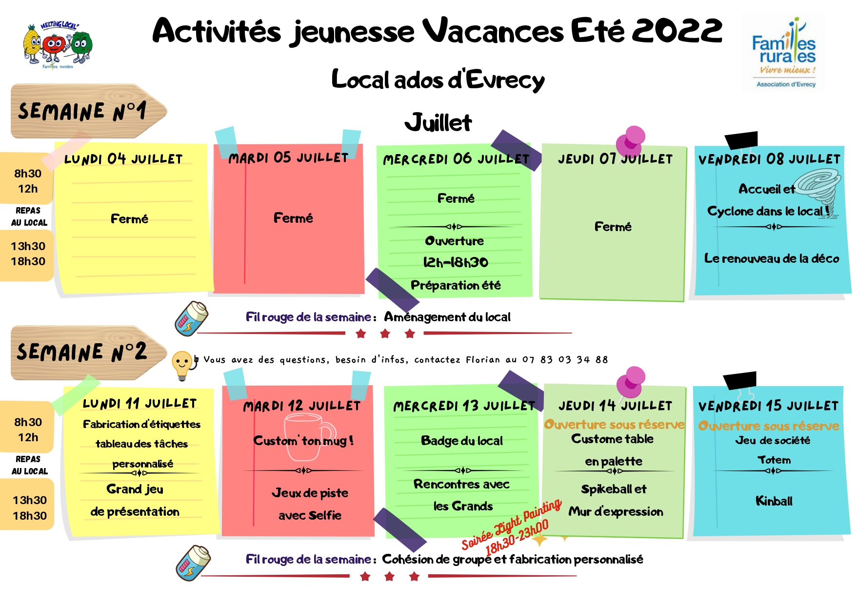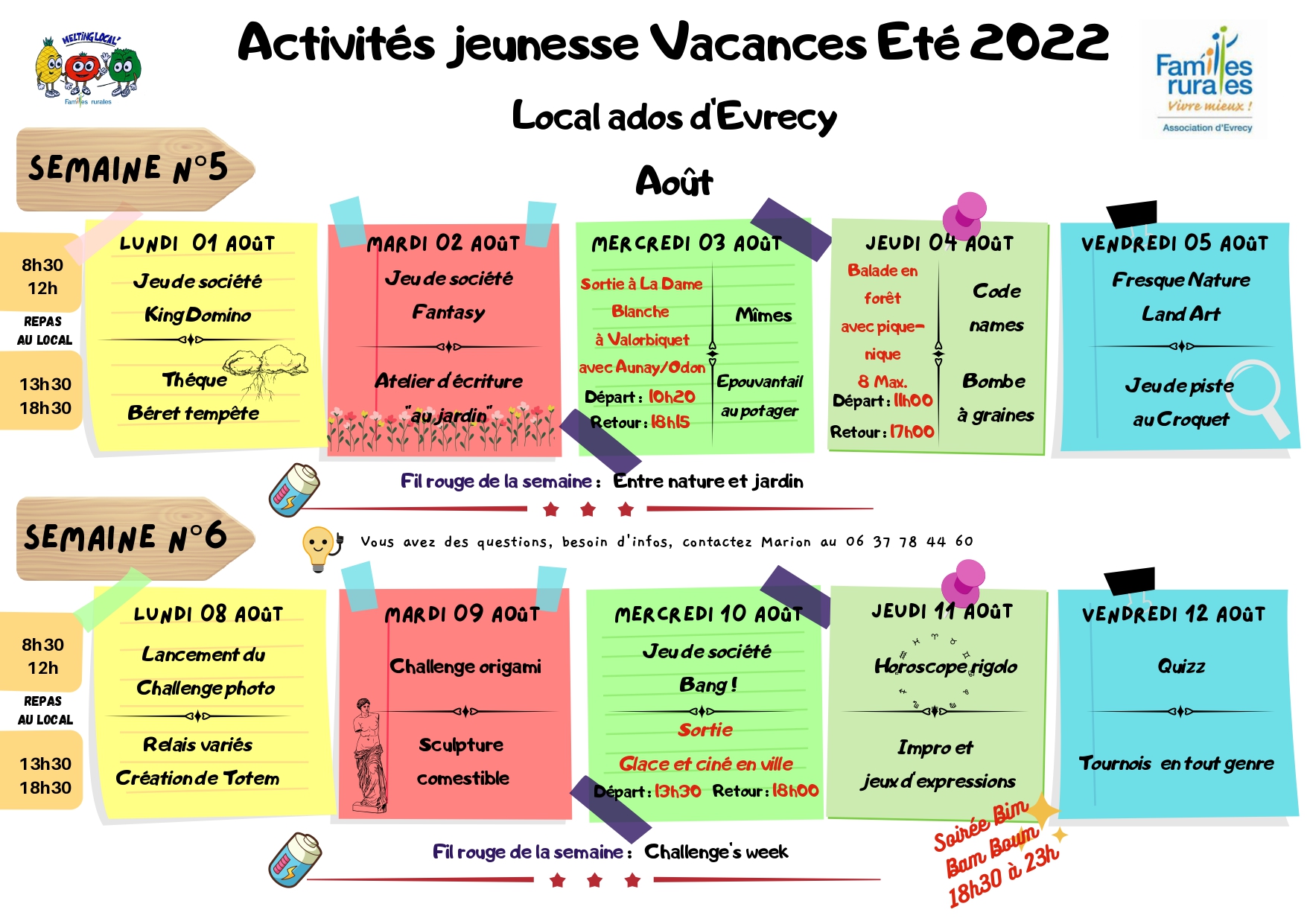 Présentation Actualités en cours de modification Inscription et tarifs Les Samedis du Local Les colos du Local 2024 Programmes Vacances de l'été 2025 (fermé à partir du 4 aout jusqu'au 18 aout) PLANNING LOCAL ADOS