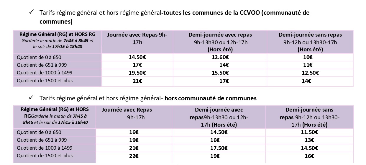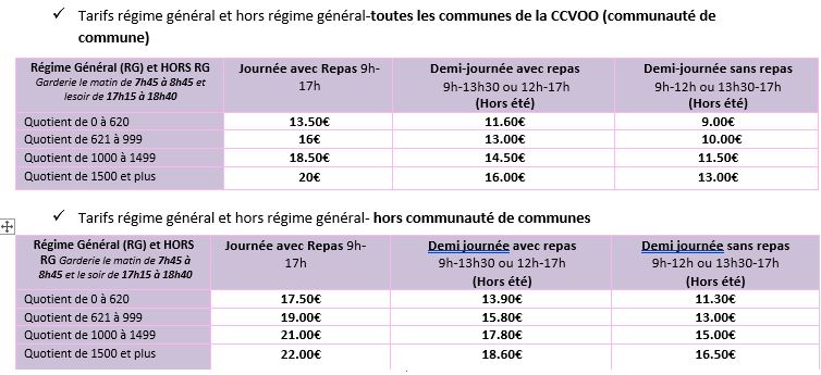 Par convention avec la Communauté de Communes Vallées de l’Orne et de l’Odon et les services de la Caisse d’Allocations Familiales du calvados, un système de tarification harmonisé sur l’ensemble du territoire communautaire est mis en place a partie du 1er Septembre 2020.