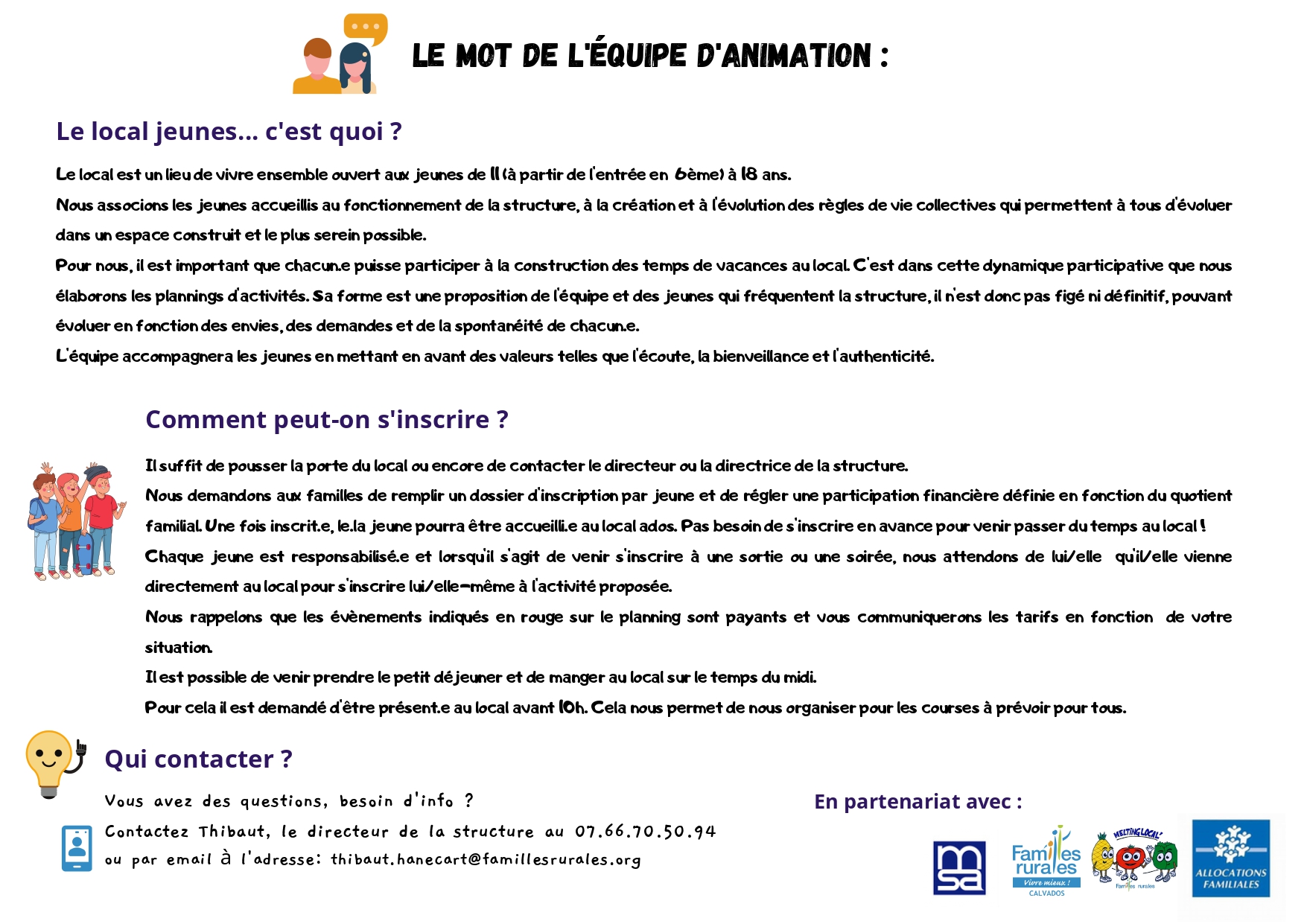 Présentation Newsletter Inscription et tarifs Les Samedis du Local Les colos du Local 2025 Programmes Janvier Février 2026