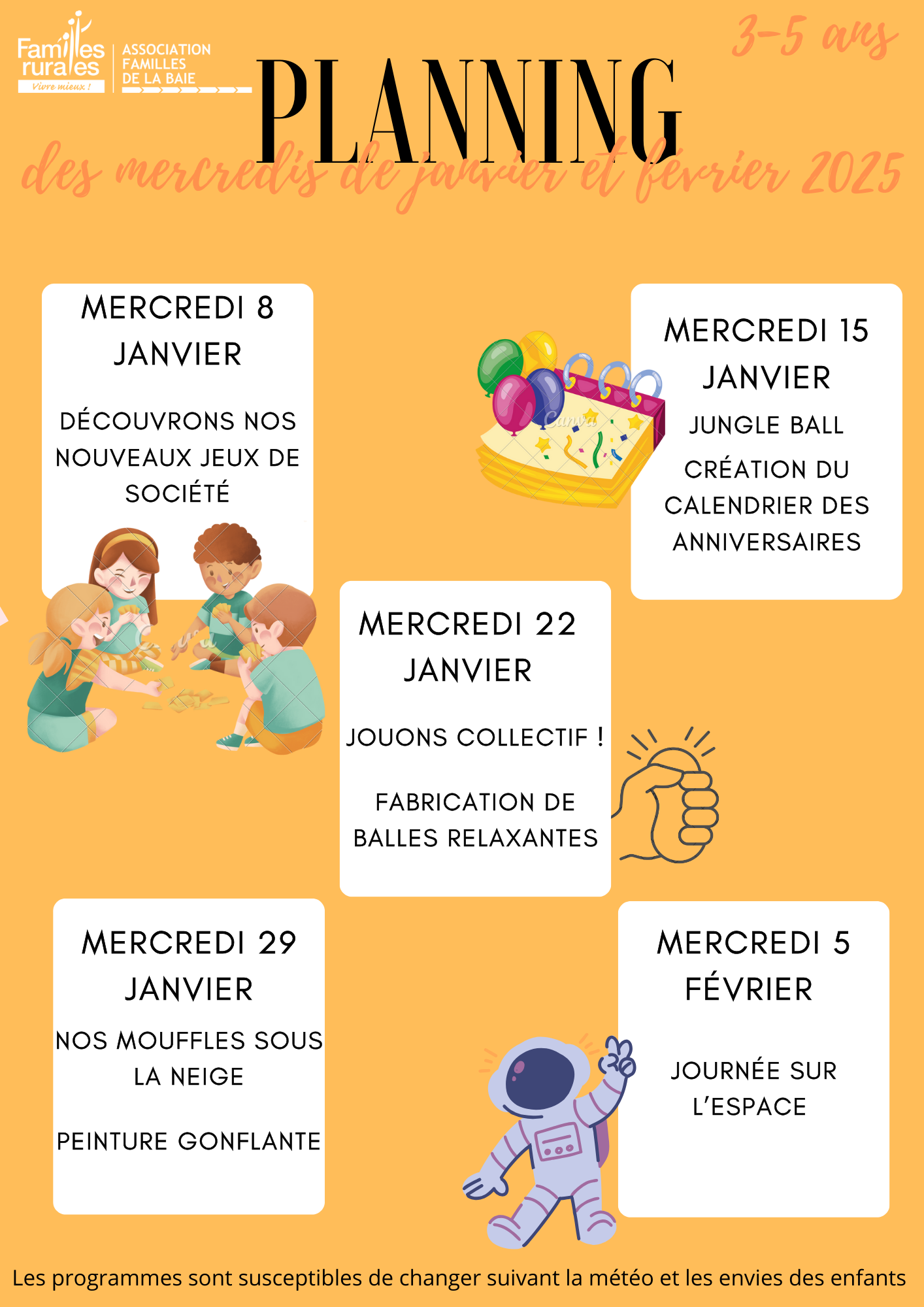 Voici le programme d'activité pour les mercredis de novembre et décembre