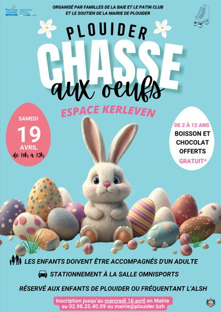 Familles de la Baie, Patin Club Plouider ainsi que la mairie organisent la troisième édition de la grande chasse aux œufs le samedi 19 avril.