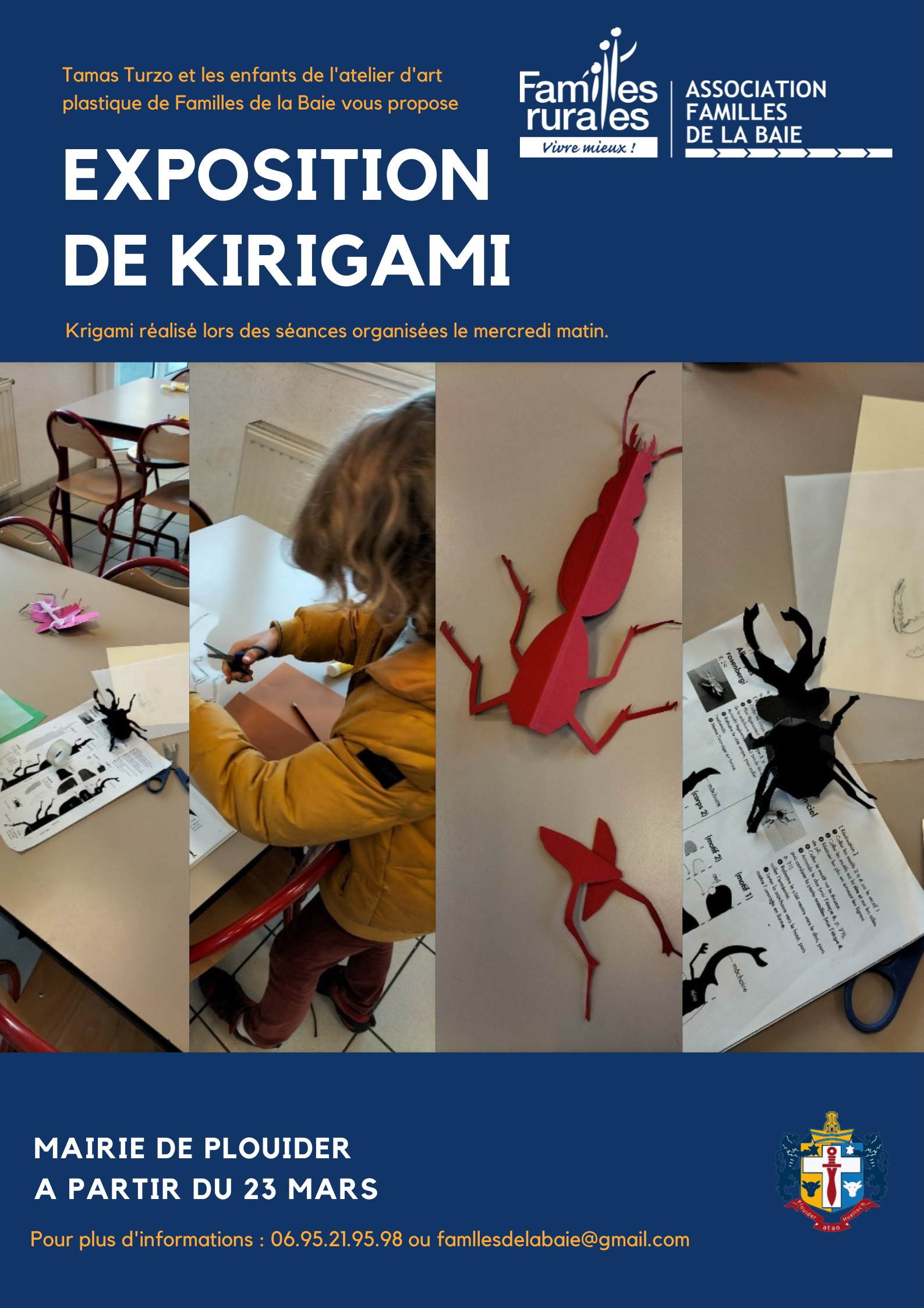 A partir du 23 mars, les enfants participants à l'atelier d'arts plastiques et leur professeur Tamas Turzo ont le plaisir de vous inviter à leur exposition de Kirigami, un art japonais à découvrir à la mairie de Plouider.