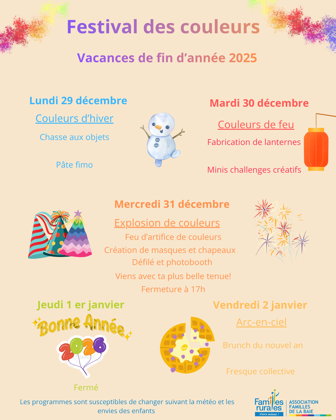 Programme des vacances de fin d'année 2025 à l'accueil de loisirs