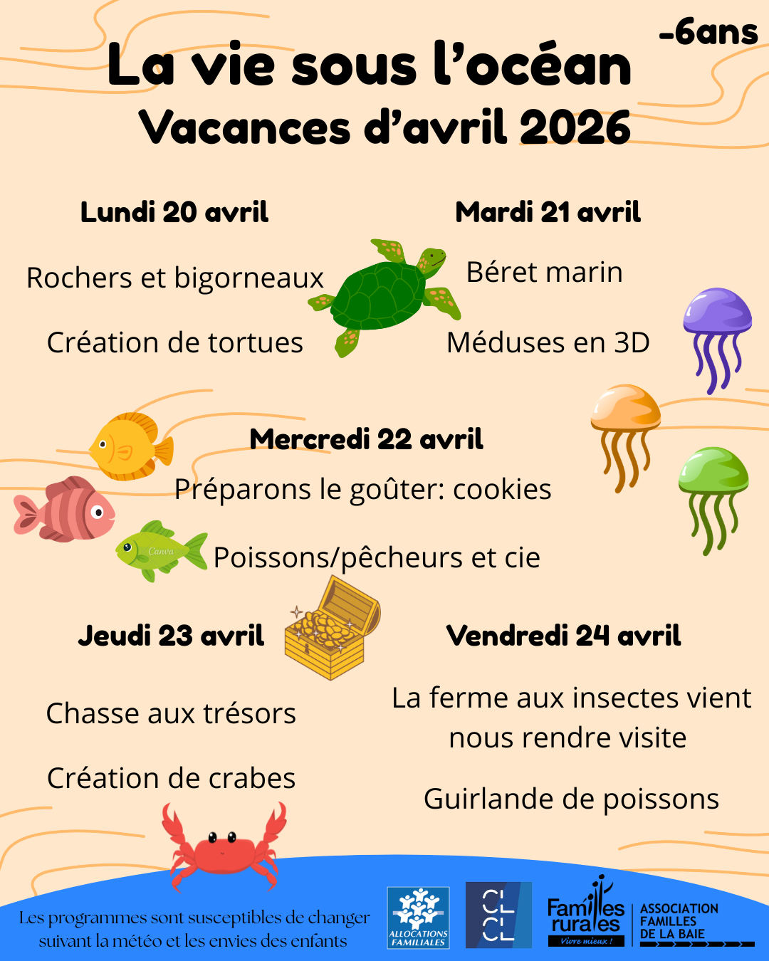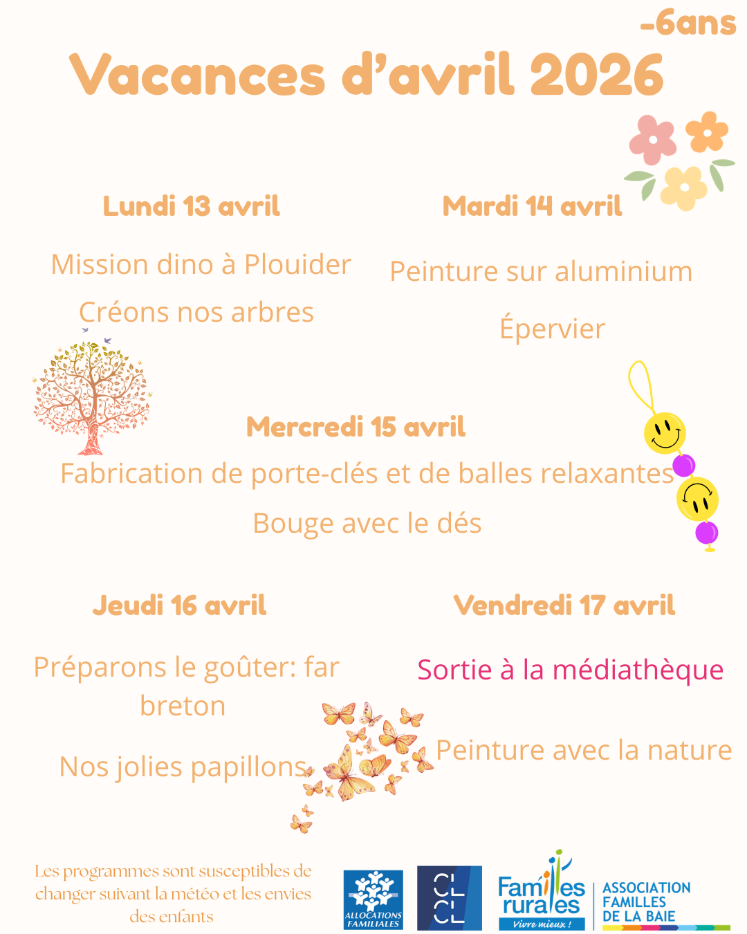 Programme des vacances d'avril -6ans