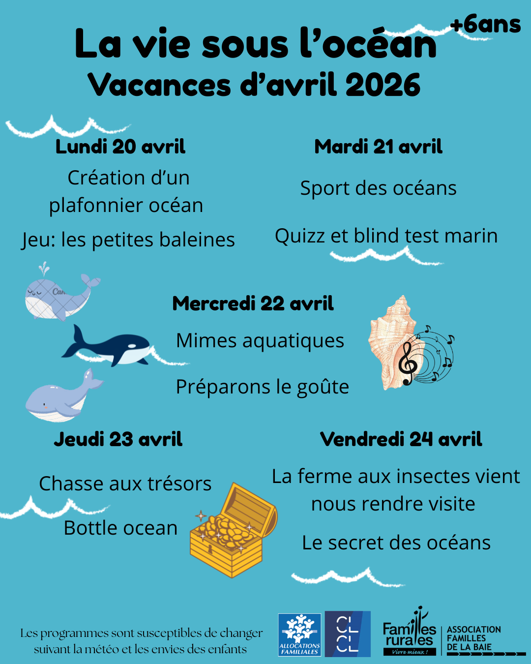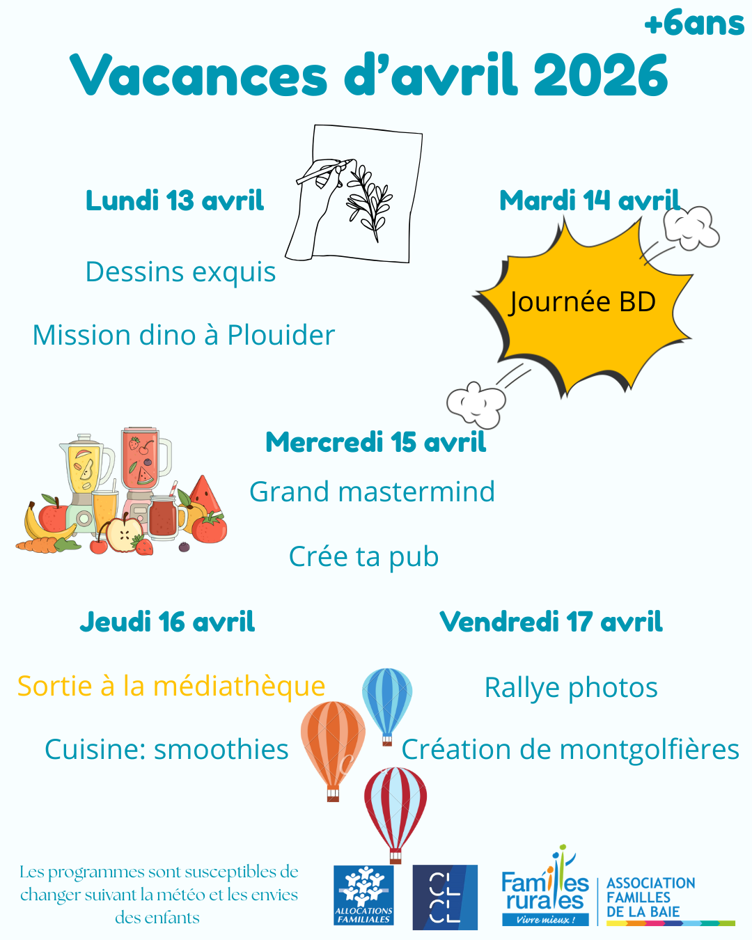 Programme des vacances d'avril +6ans