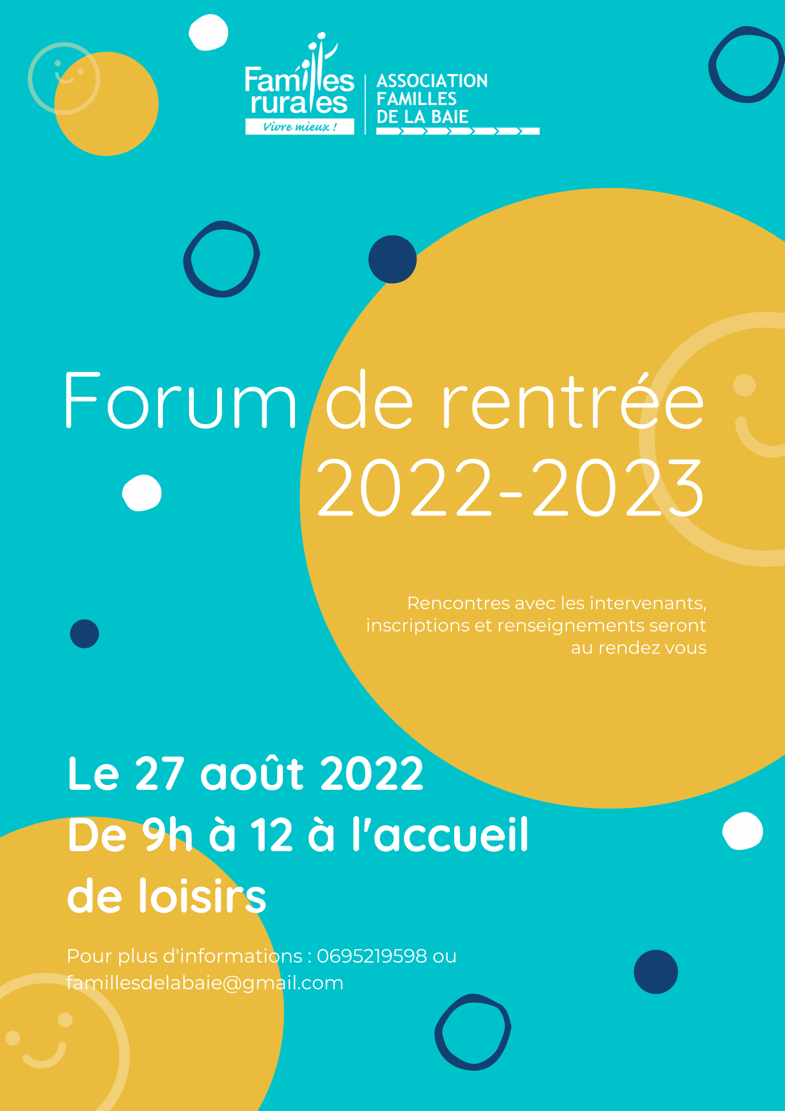 Pour plus de renseignements : 06 95 21 95 98 ou famillesdelabaie@gmail.com