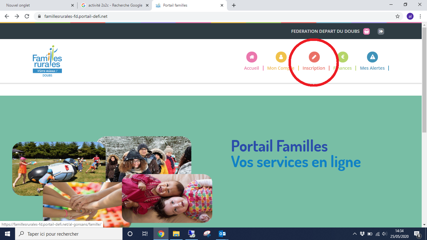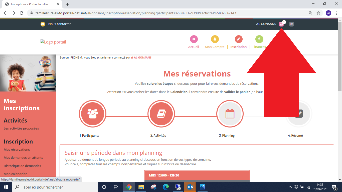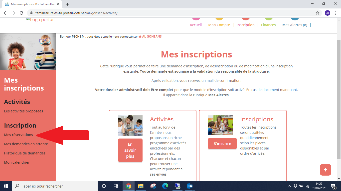 Pour inscrire votre enfant, il faut tout d'abord aller dans l'onglet "mes inscriptions" :