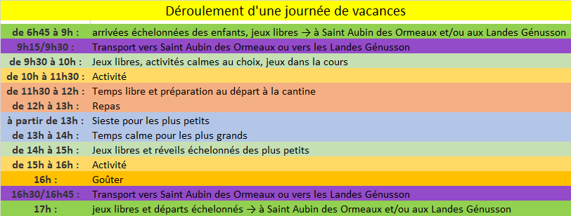 Du 4 juillet au 25 juillet 2025, les enfants seront accueillis sur le site de Saint-Aubin-des-Ormeaux.