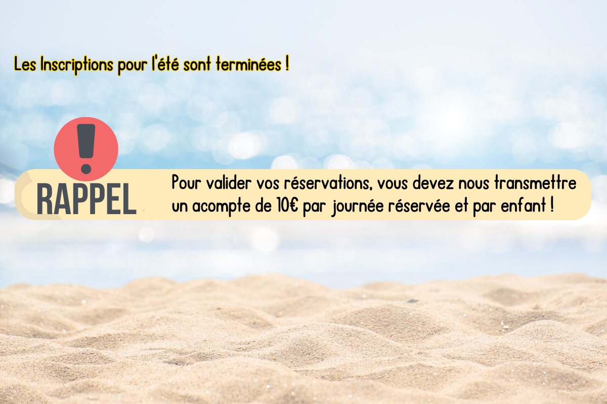 Pour rappel, afin de valider vos réservations, vous devez nous transmettre un acompte de 10€ par journée réservée et par enfant.