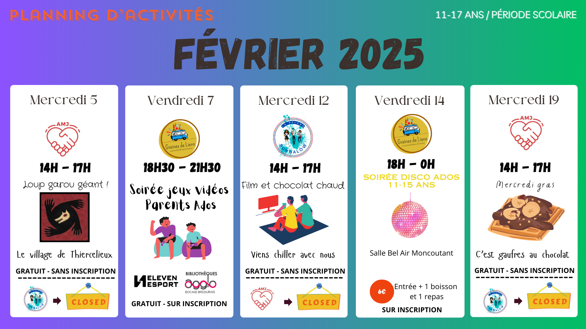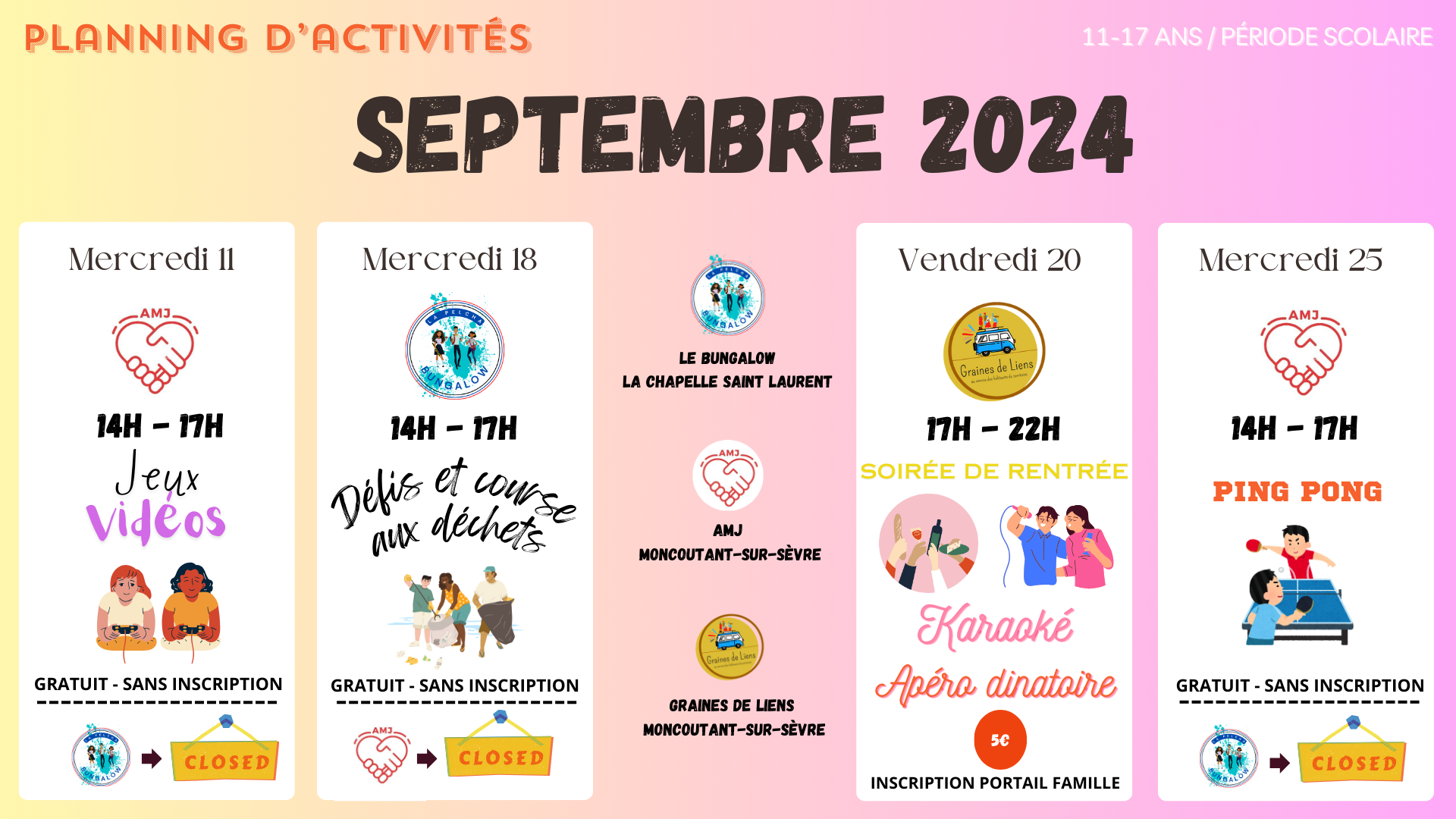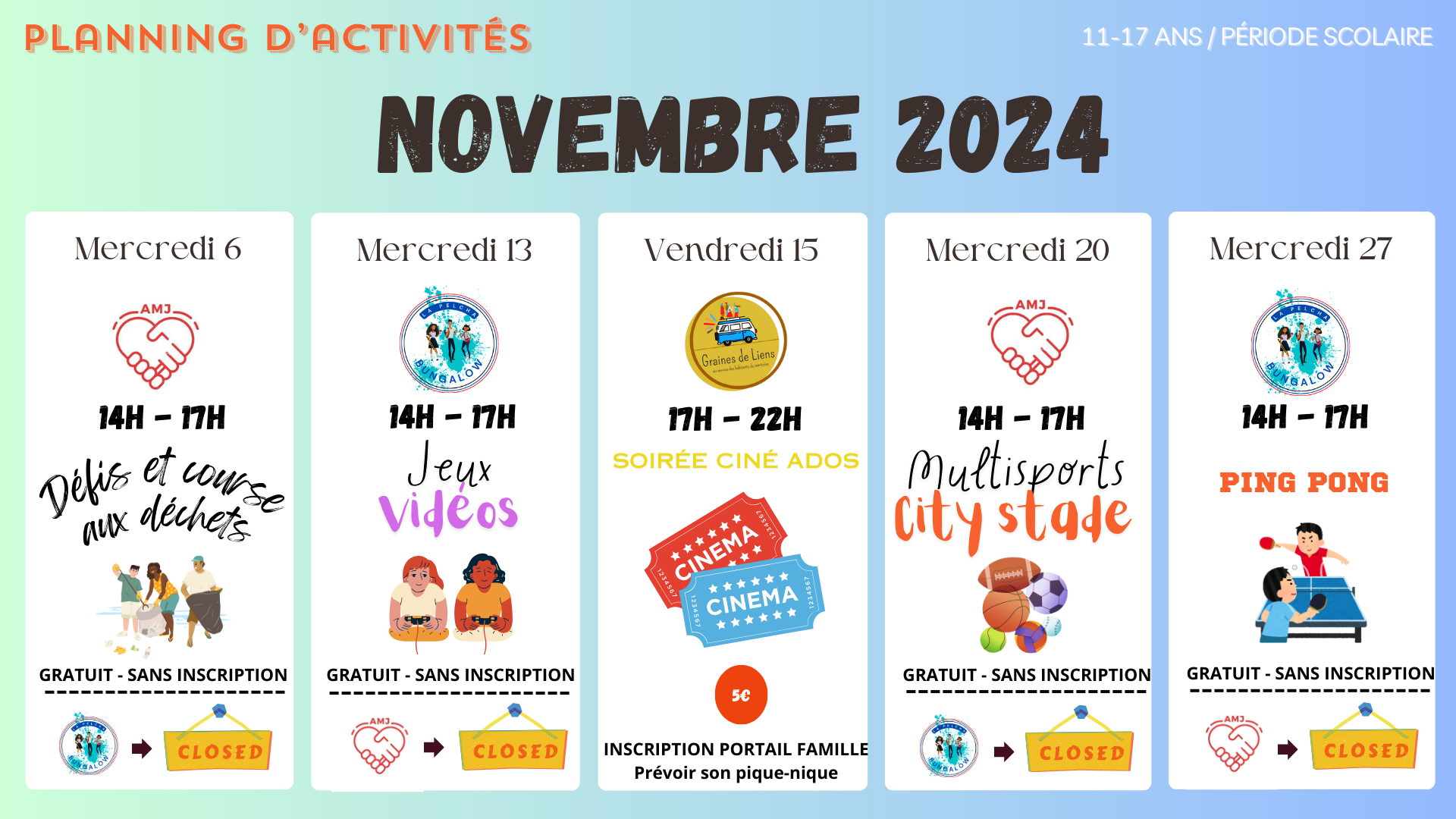 Retrouvez ci-dessous les plannings d’activités des Espaces Jeunesse :