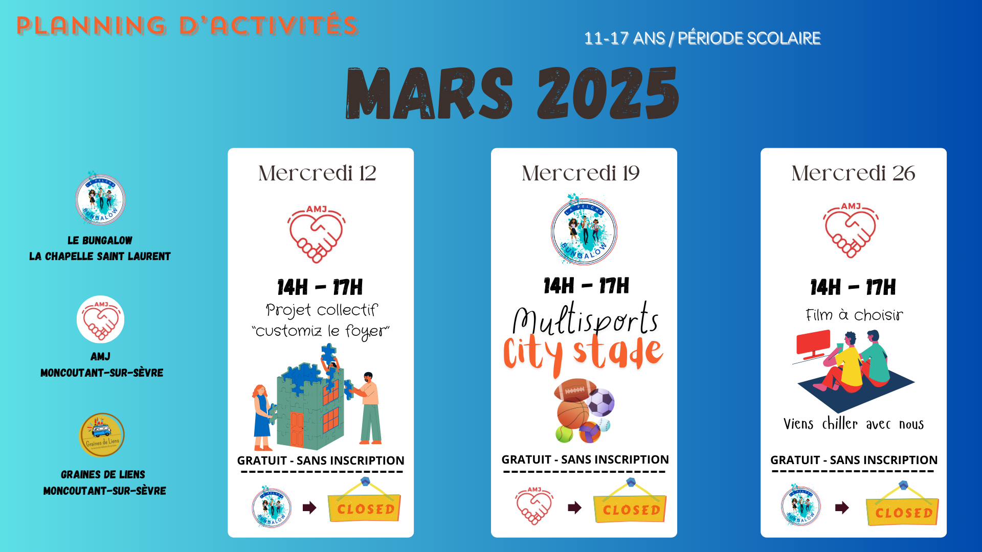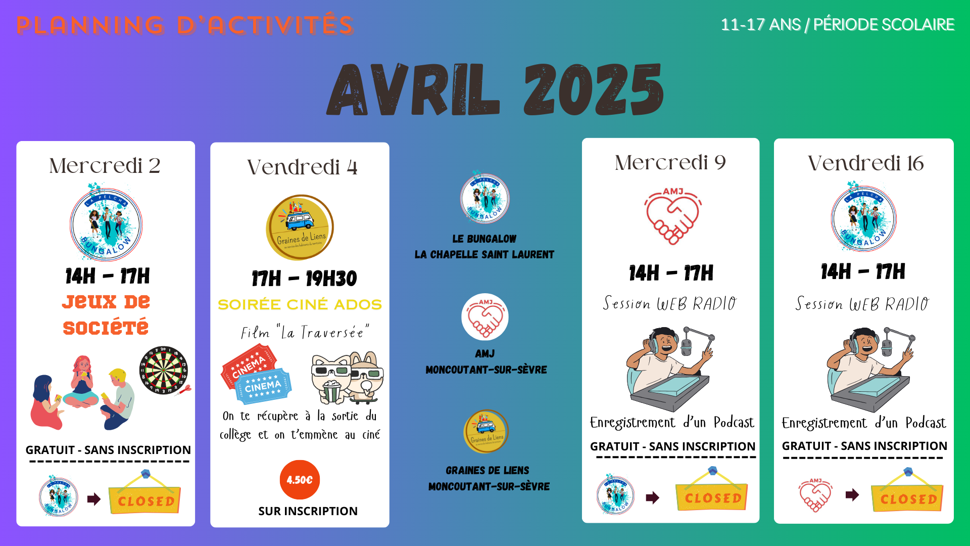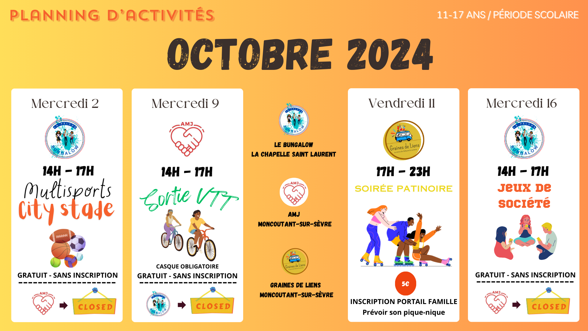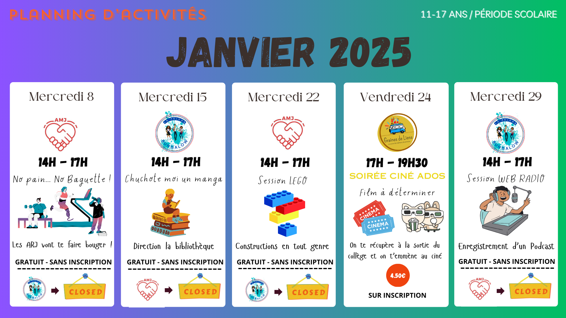 Retrouvez ci-dessous les plannings d’activités des Espaces Jeunesse :