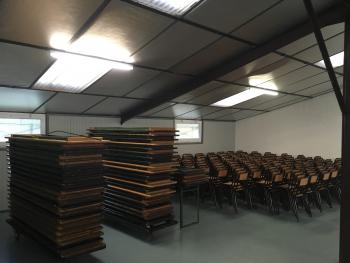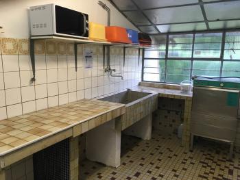La salle en images Les cuisinesCuisine 1 avec notamment un réfrigérateur, un congélateur coffre, le lave-vaisselle et un évier Cuisine 2 avec notamment deux réfrigérateurs, le matériel pour cuisiner, un évier La salle Les WC Tables et chaises Les extérieurs