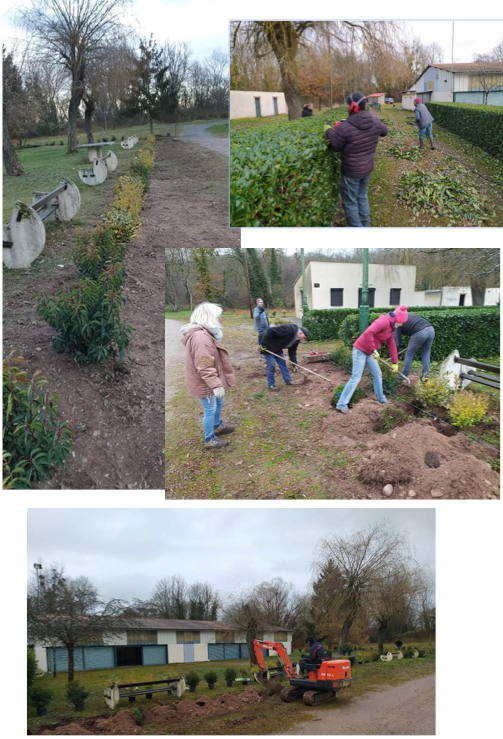 Des nouveaux arbustes plantés par l'équipe de bénévoles autour de la salle, et une belle taille des anciens devenus grands ;-) 16 décembre 2021
