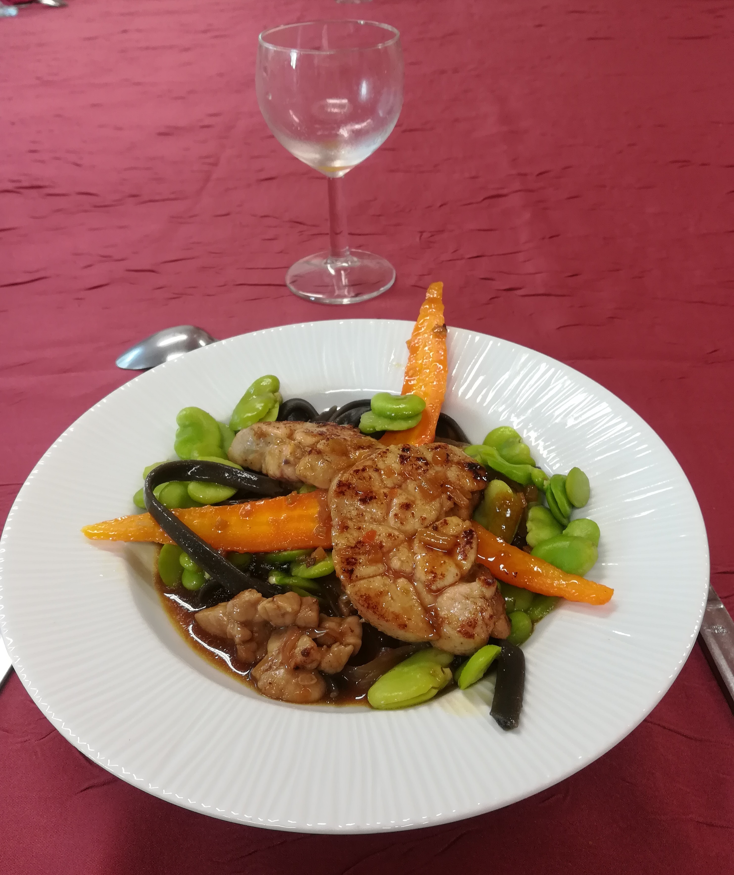 Ris de veau braisé aux fèves Croissant de lune aux framboises