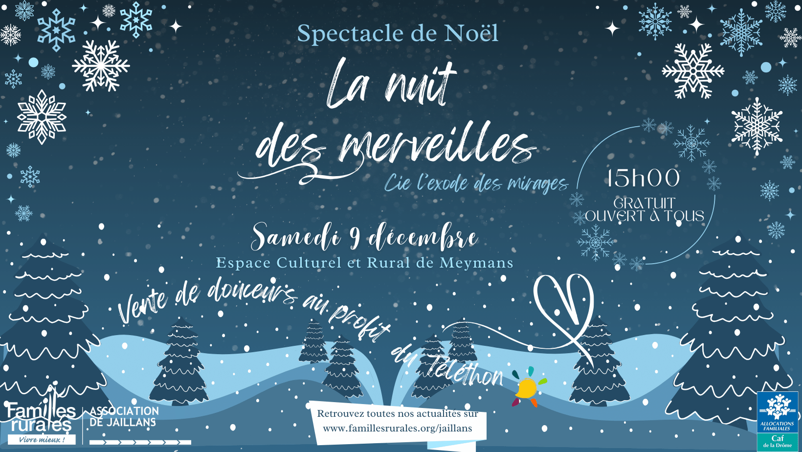 Spectacle de noel le samedi 9/12 à 15h a la salle des fêtes de Meymans