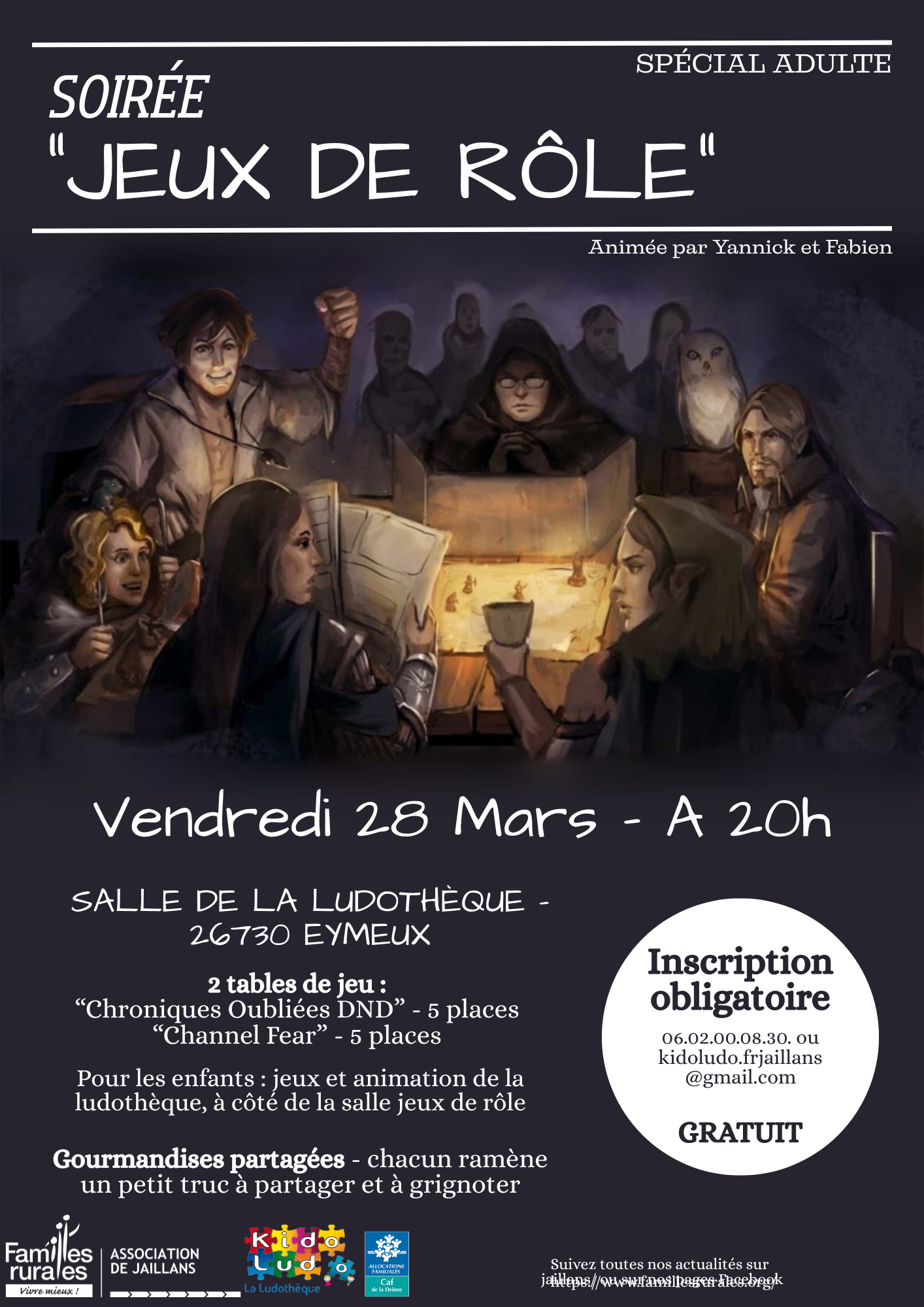 Vendredi 28 mars à 20h - Salle de la ludothèque (Eymeux)