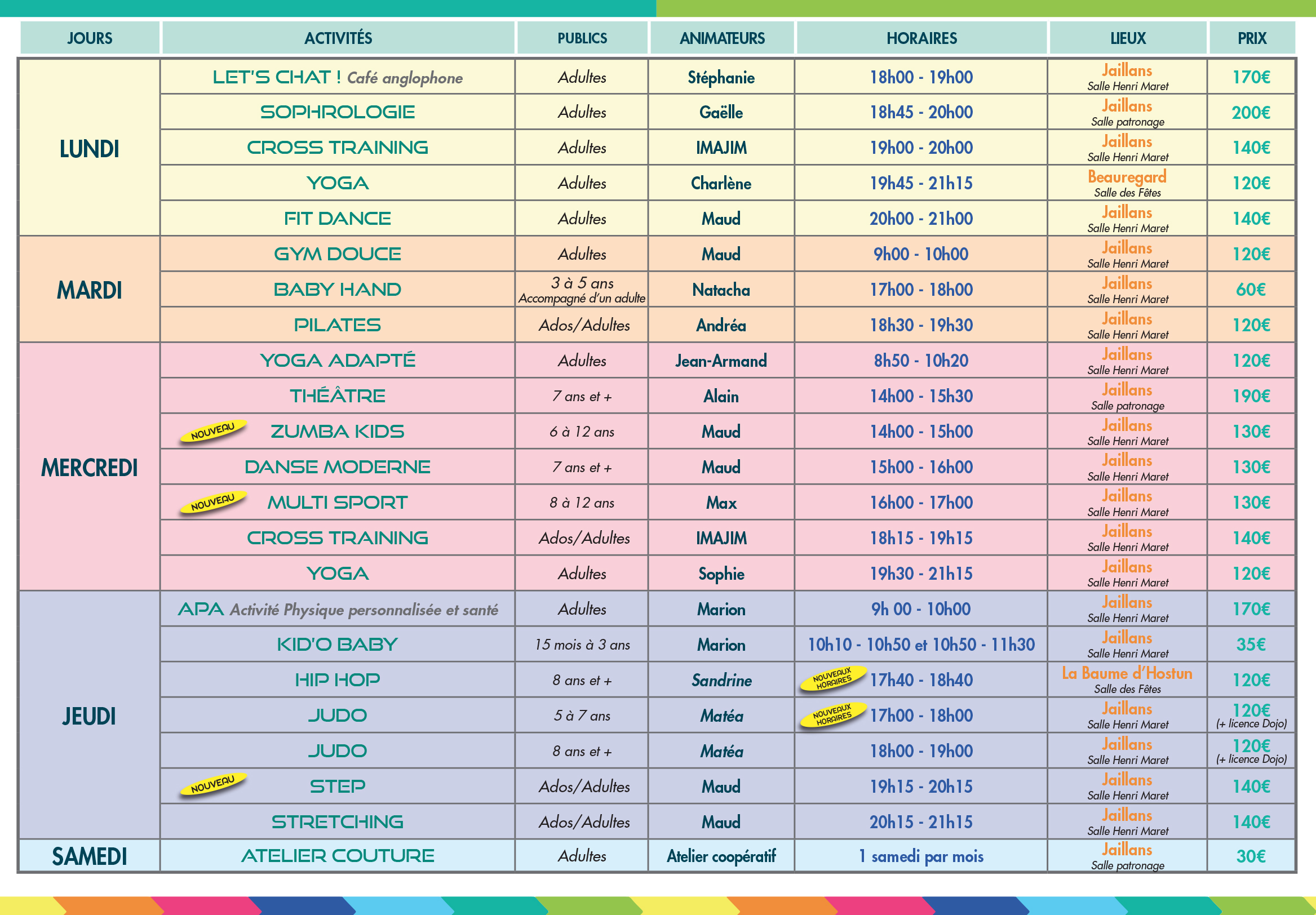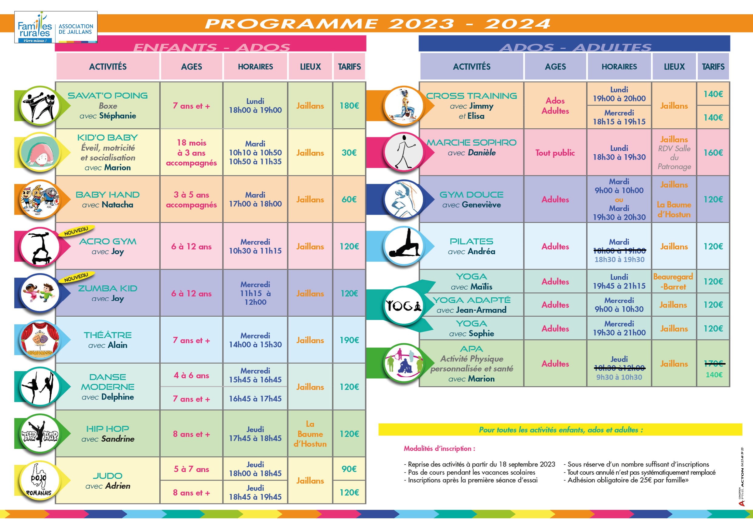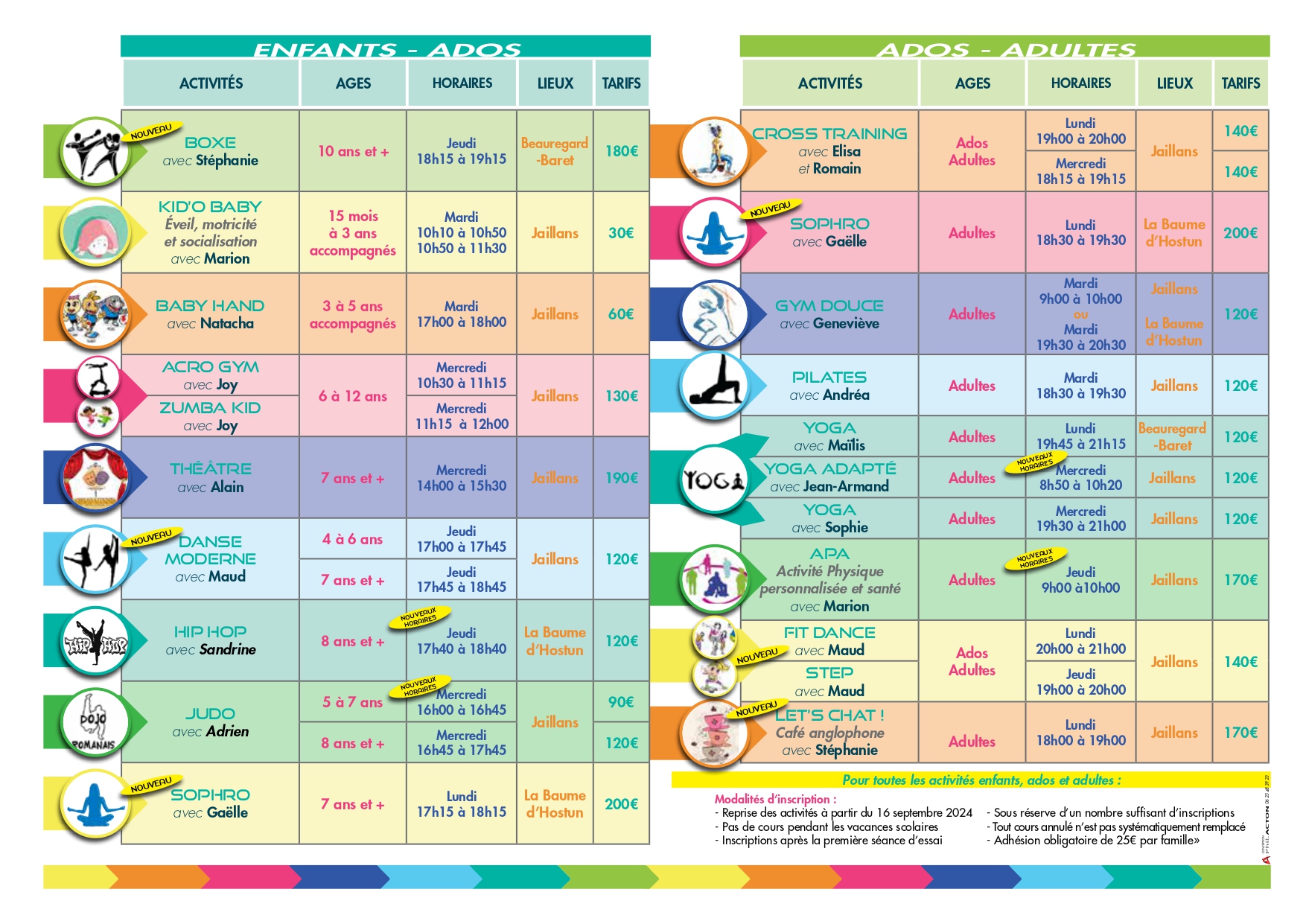 Danse, judo, théâtre... et bien d'autres, n'hésitez pas à consulter la plaquette !
