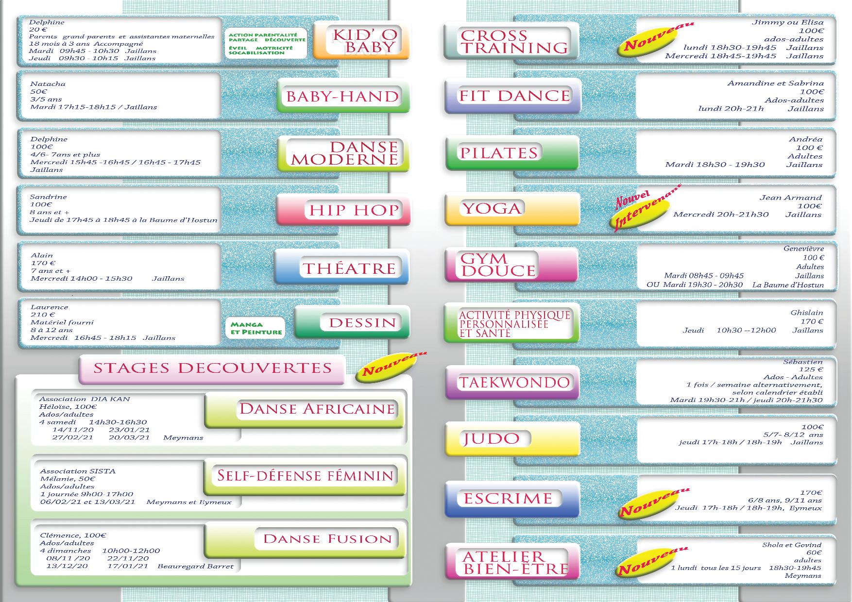 A partir du 14 septembre, c'est la reprise des activités loisirs avec quelques nouveautés !!