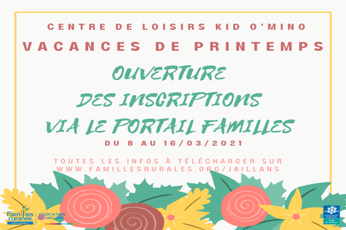 La période des inscriptions se clôture le 16/03/2021 via le Portail Familles.
