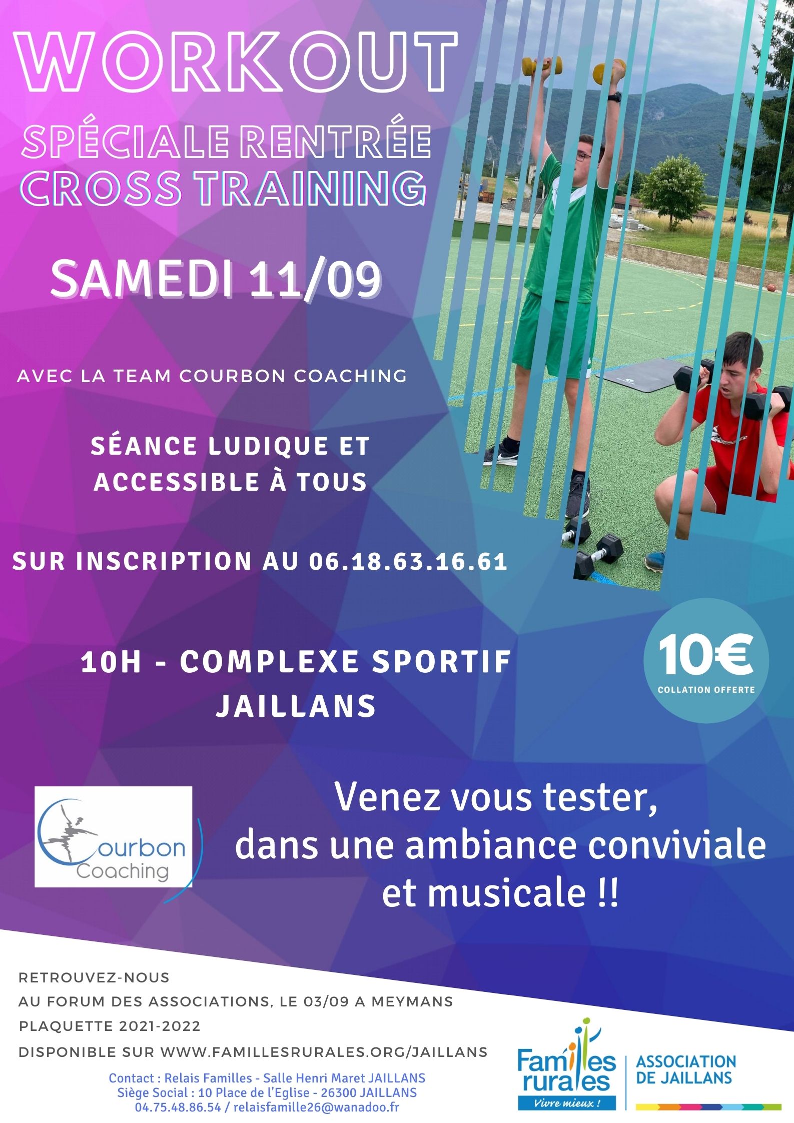 Elisa et Jimmy vous propose un circuit complet combinant cardio et renfo, accessible à tous, le 11/09 au complexe sportif à Jaillans.