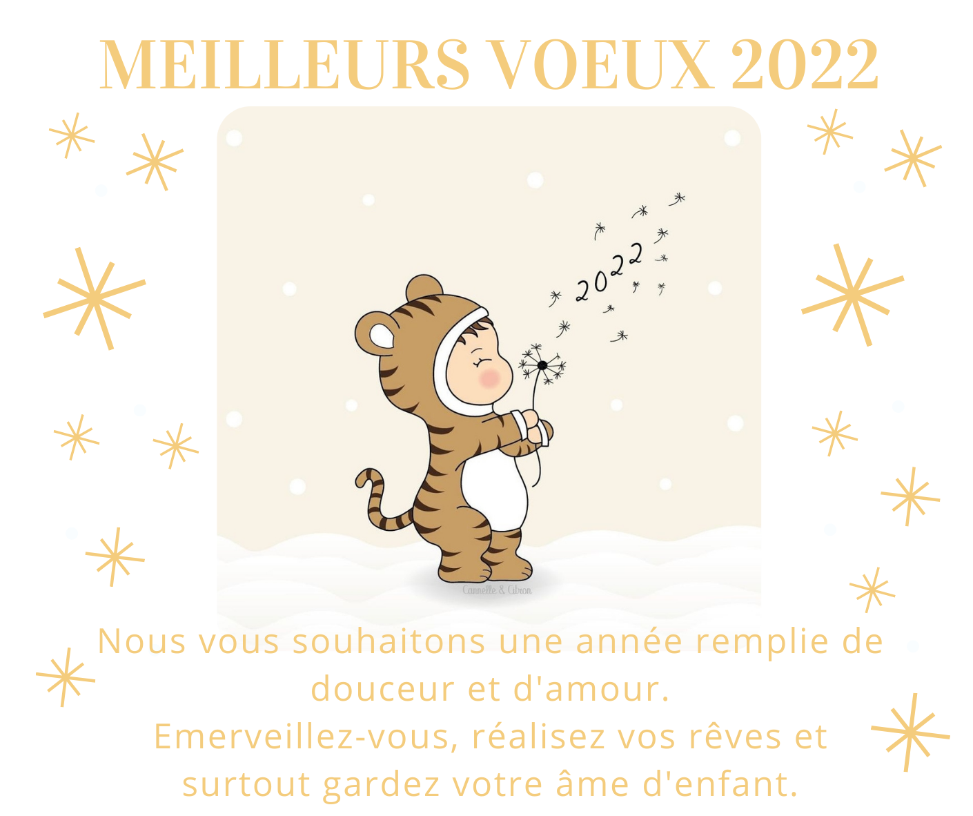Nous souhaitons une année remplie de douceur et d'amour. Emerveillez-vous, réalisez vos rêves et surtout gardez votre âme d'enfant. 2 janvier 2022