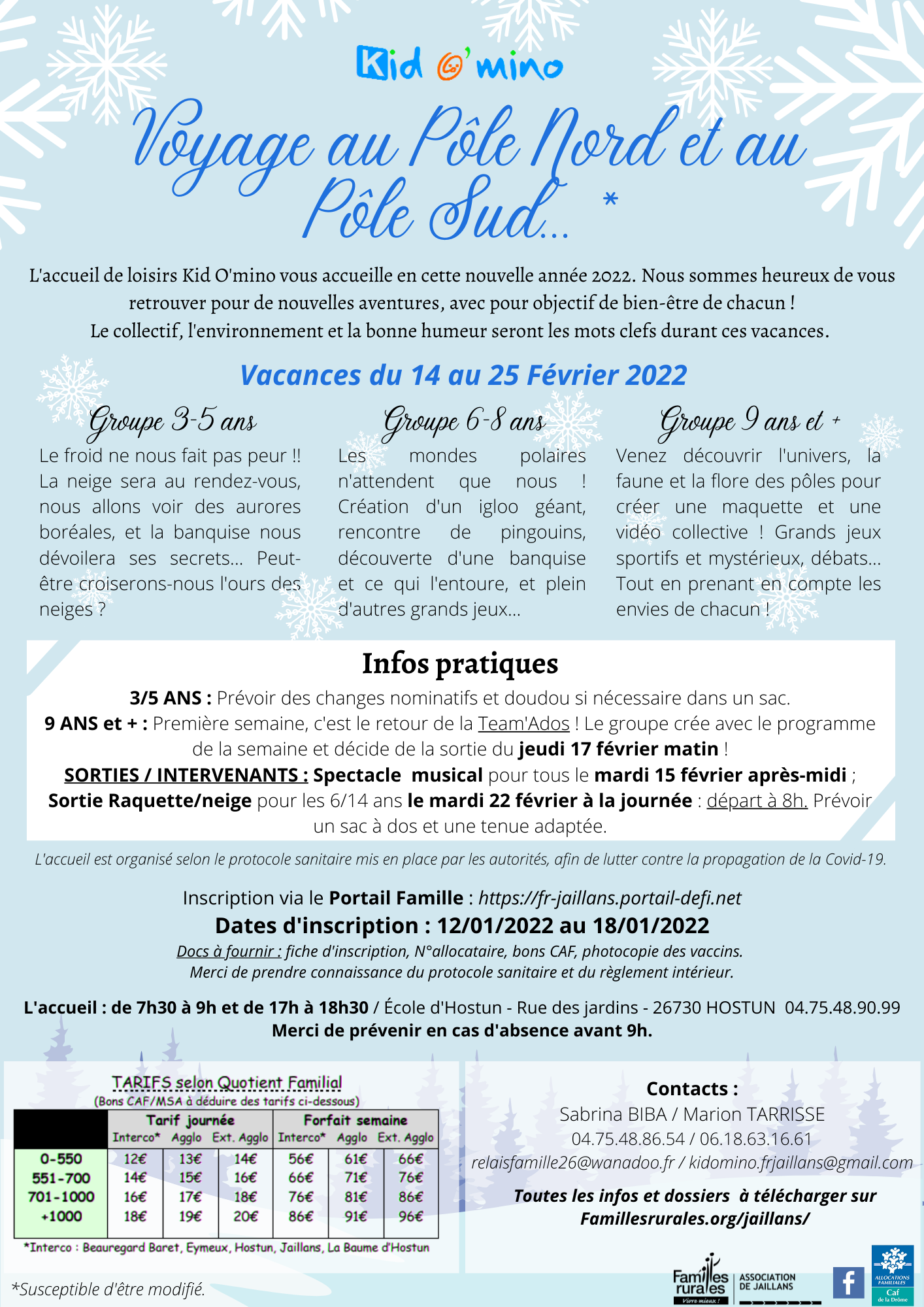 C'est parti pour les inscriptions sur le portail famille du 12 au 18 janvier 2022 !
