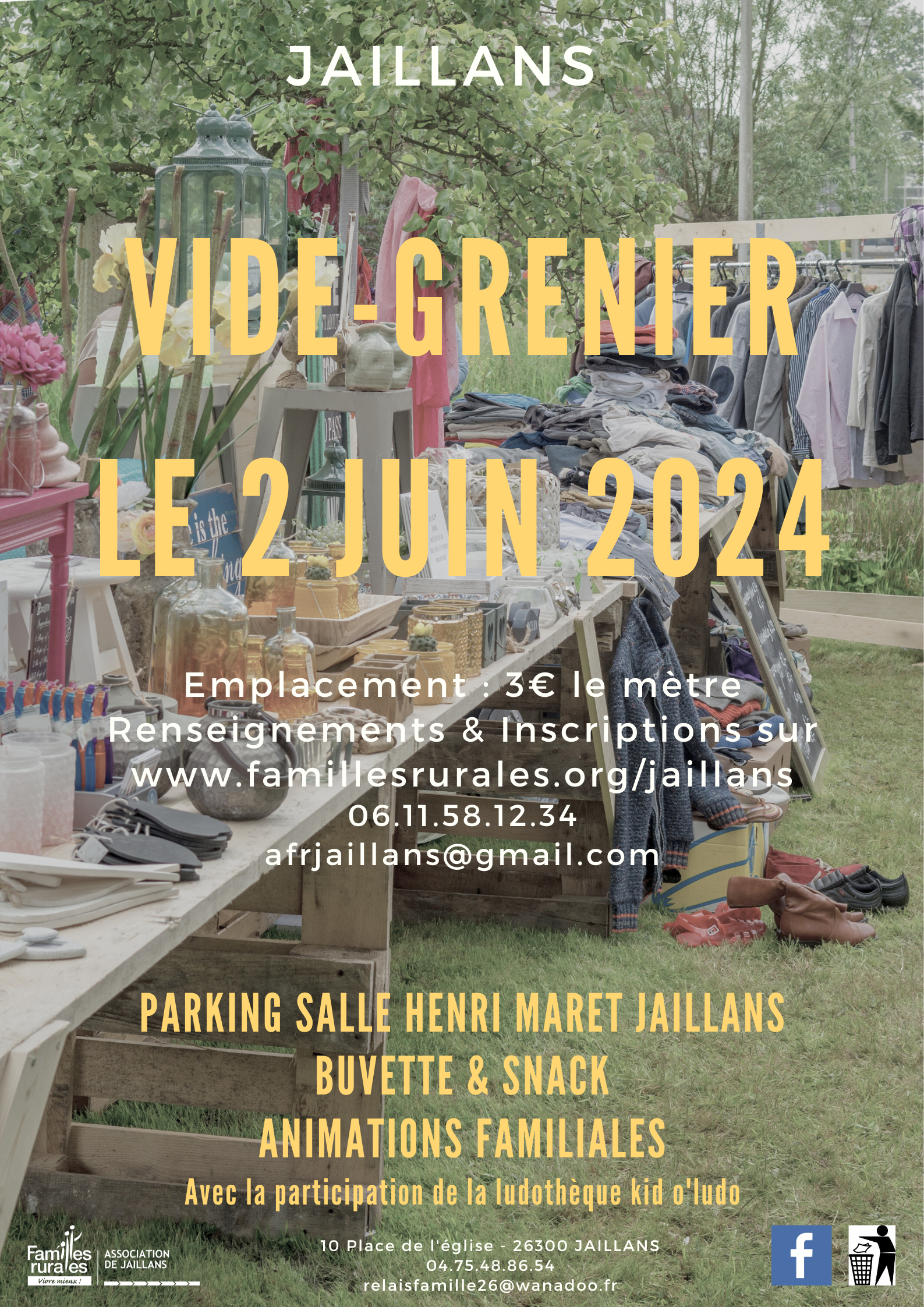Animations locales & Convivialité VIDE COFFRE A JOUETS, JEUX & LIVRES VIDE GRENIER En savoir plus BULLETIN INSCRIPTION VIDE GRENIER 2024.pdf105.51 Ko REGLEMENT INTERIEUR VIDEGRENIER JAILLANS 2024.pdf183.63 Ko