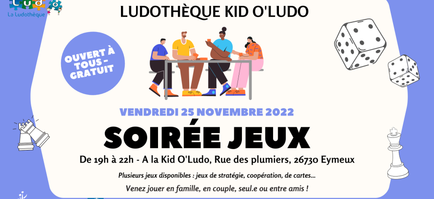 On se retrouve le vendredi 25 novembre de 19h à 22h pour une soirée "jeux" dans une ambiance magique et festive !