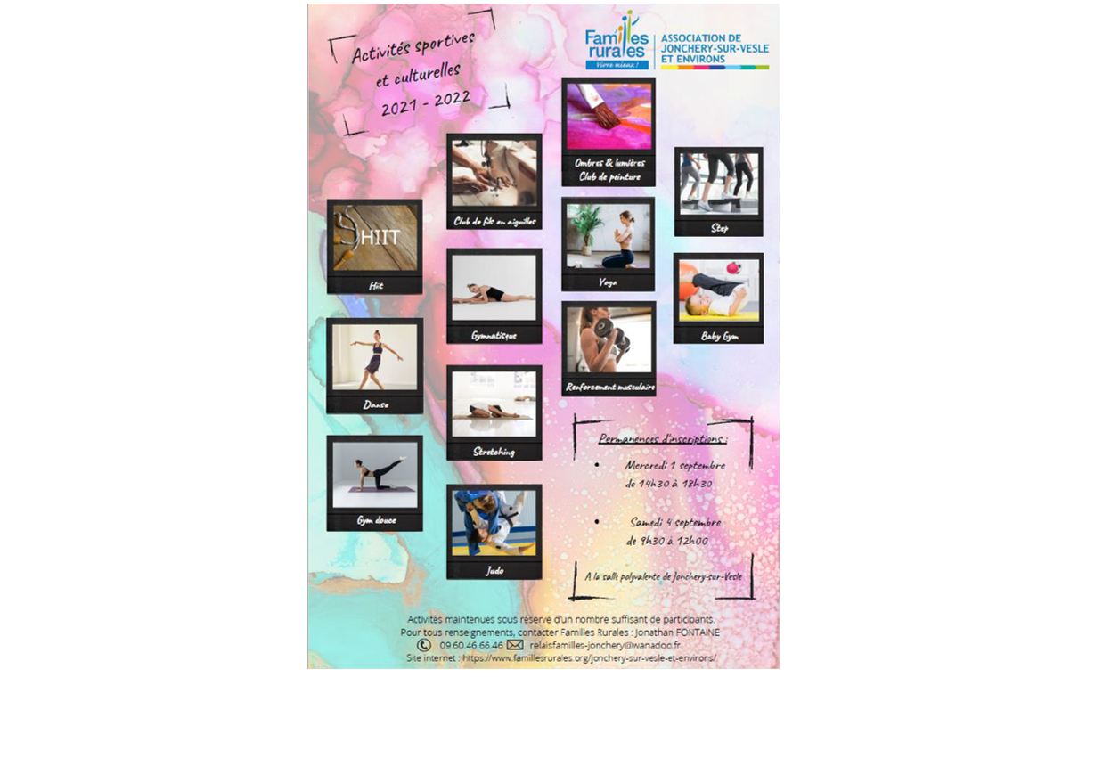 Toute l'équipe de l'association Familles Rurales de Jonchery-sur-Vesle vous présente ses meilleurs vœux pour l'année 2021