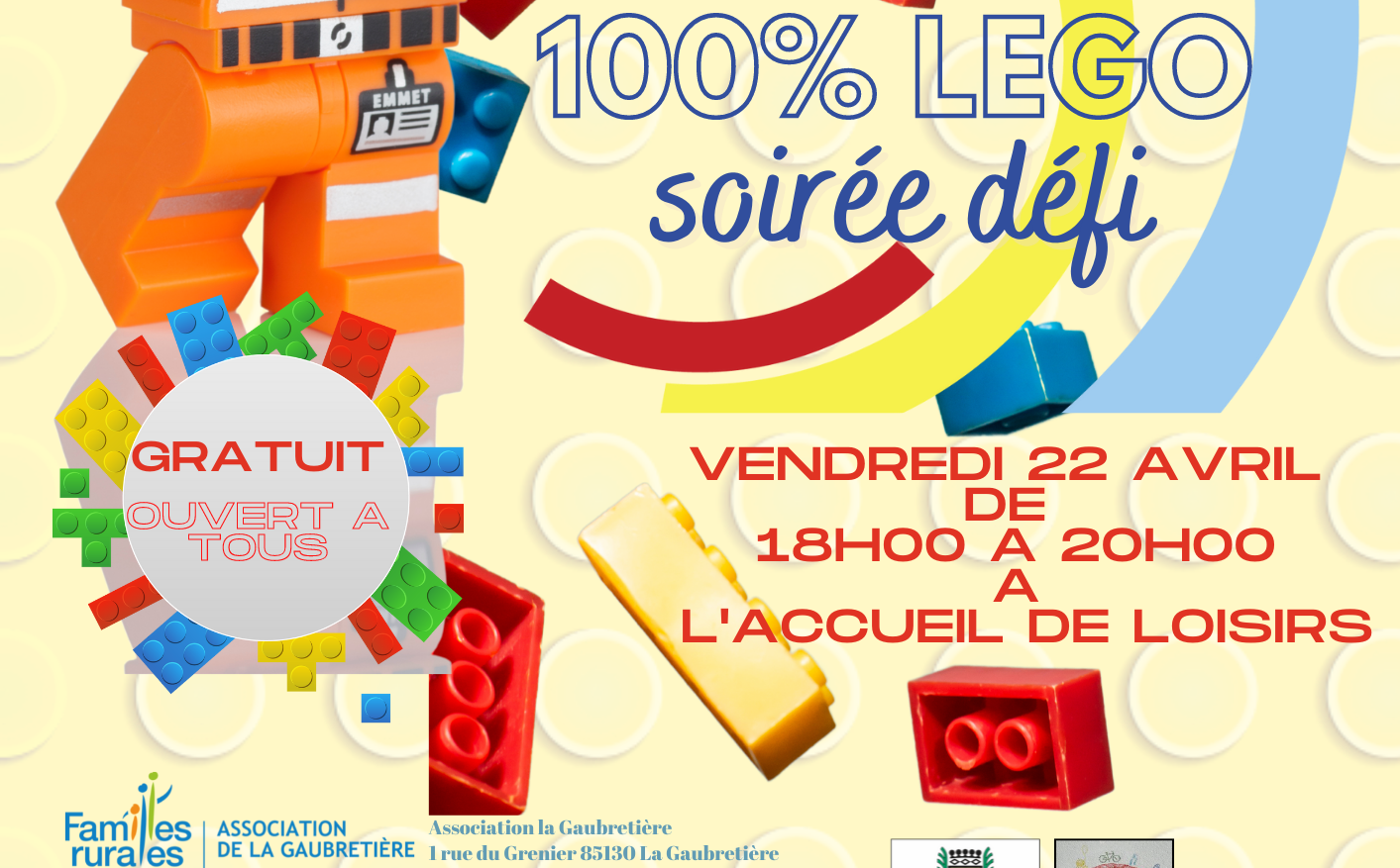 A défaut de vous proposer le casting pour la prochaine saison de Lego Master, nous vous invitons à une soirée défi en famille ici à l'accueil de loisirs. Pas de super prix à gagner mais bien plus encore. De bons moments en famille, du rire, de la complicité, de l'imagination, de la créativité, pas de stress ni de pression, juste le plaisir de construire ensemble.