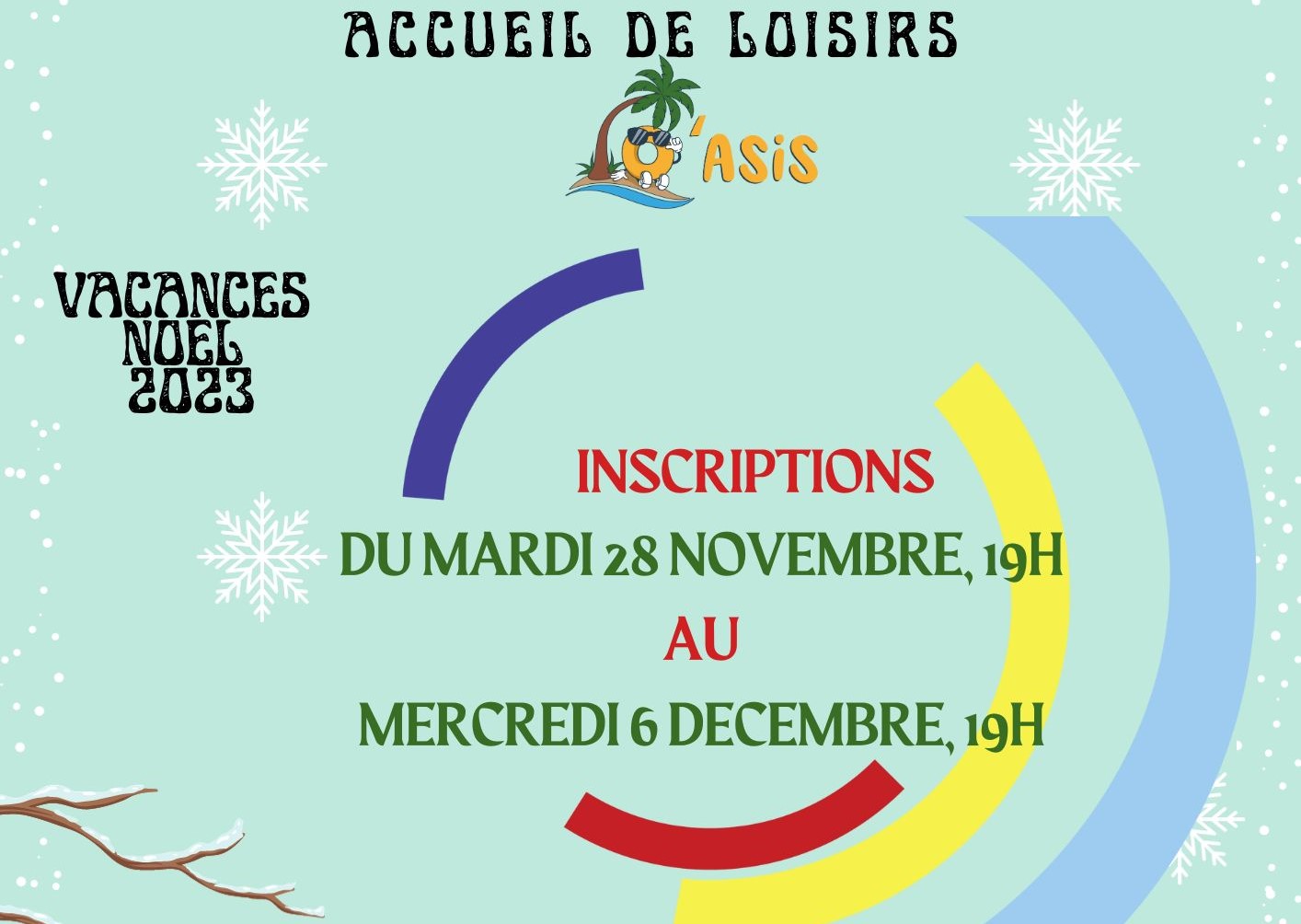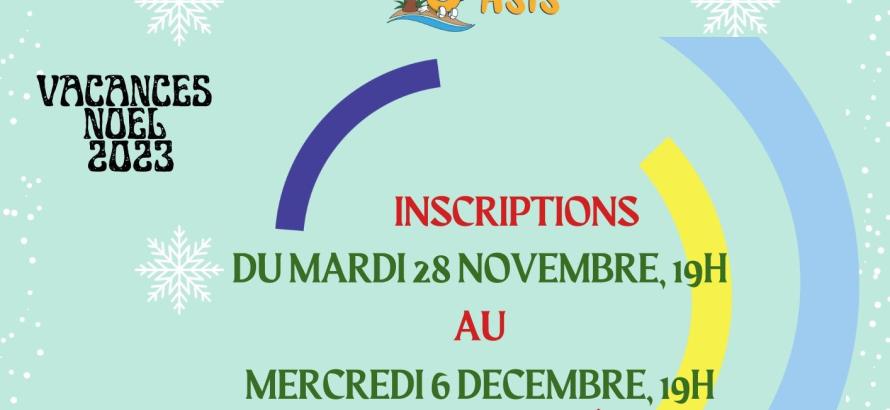 Les inscriptions pour les vacances de Noël vont ouvrir le mardi 28 novembre 19h00 au mercredi 6 décembre 19h00. 26 novembre 2023