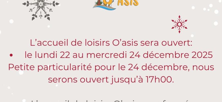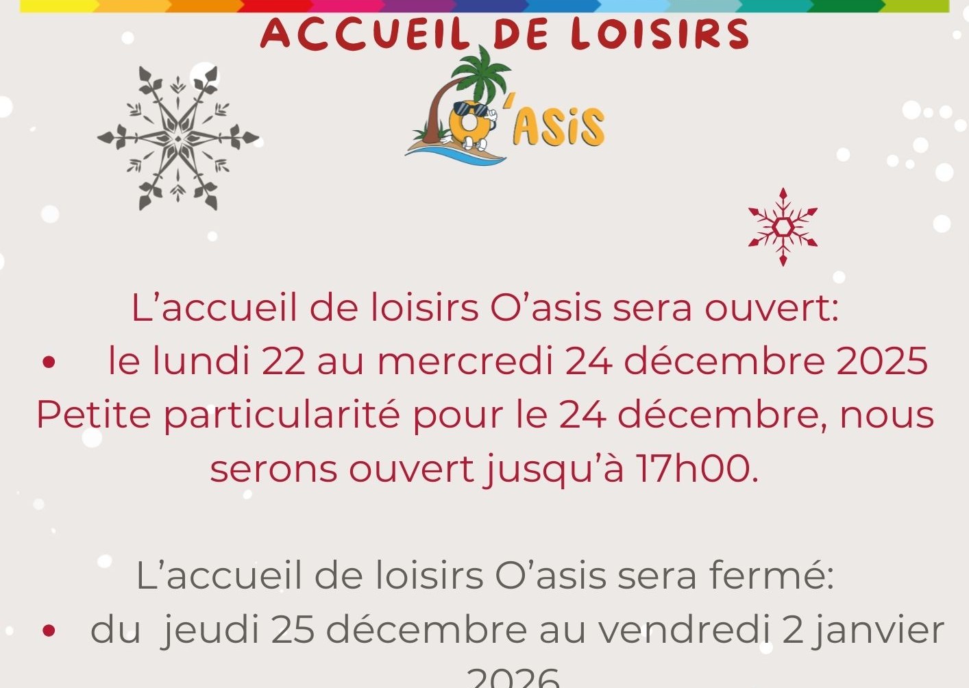 Info fermeture. L'accueil de loisirs fermera ses portes le mercredi 24 décembre à 17h00 11 octobre 2025