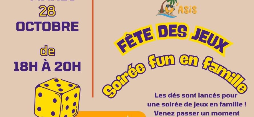 Et pour ne pas vous laisser sur la touche, vous les parents, grands-parents, tatas, tontons etc..., nous vous invitons à une soirée spéciale jeu en famille le mardi 28 octobre de 18h00 à 20h00. Entrez dans le monde du jeu, du fun, du rire pour partager un moment unique en famille. C'est sans inscription et vous y passez le temps que vous voulez. Vous pouvez même emmener votre pique-nique au cas où vous ne verriez pas le temps passer.