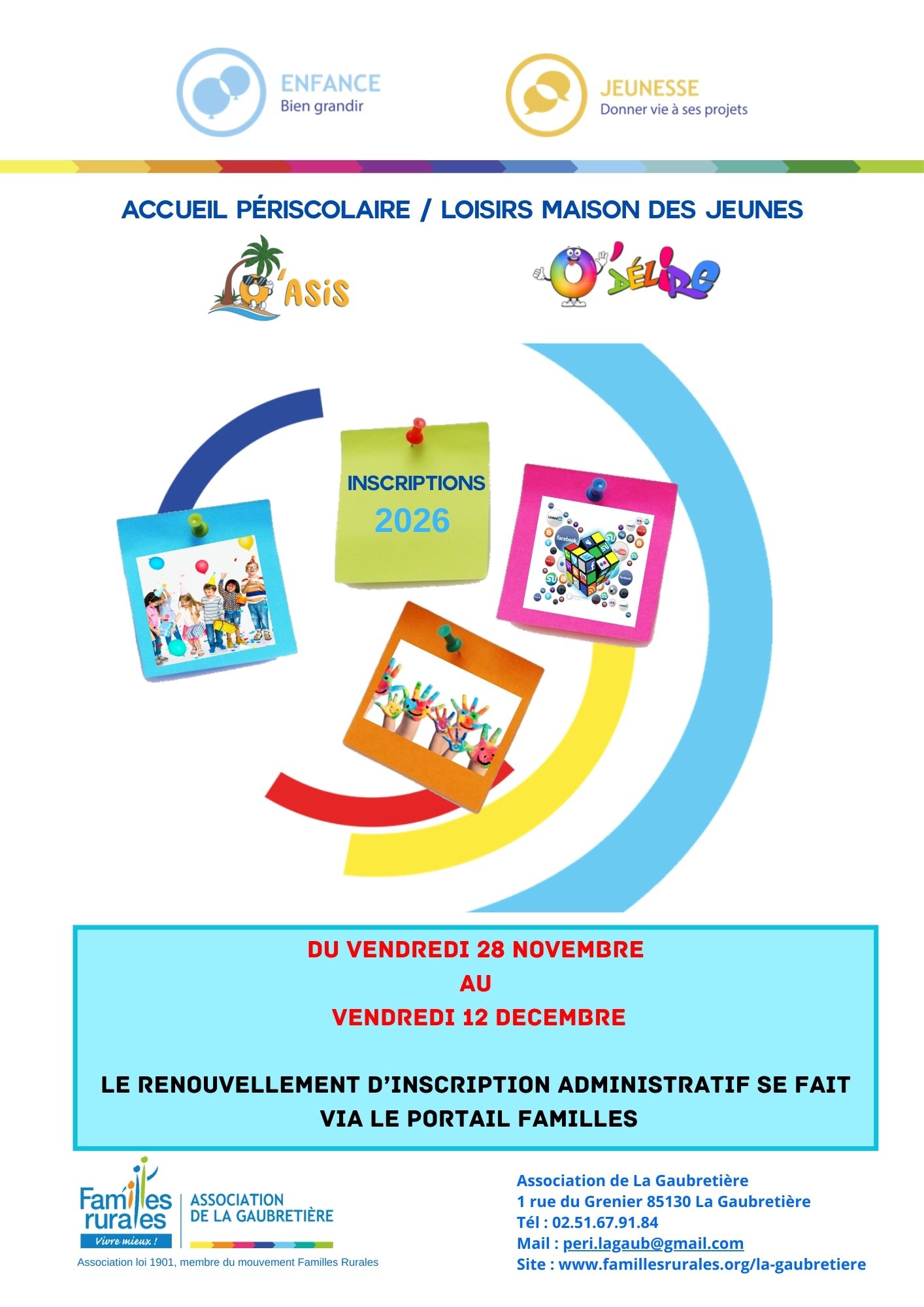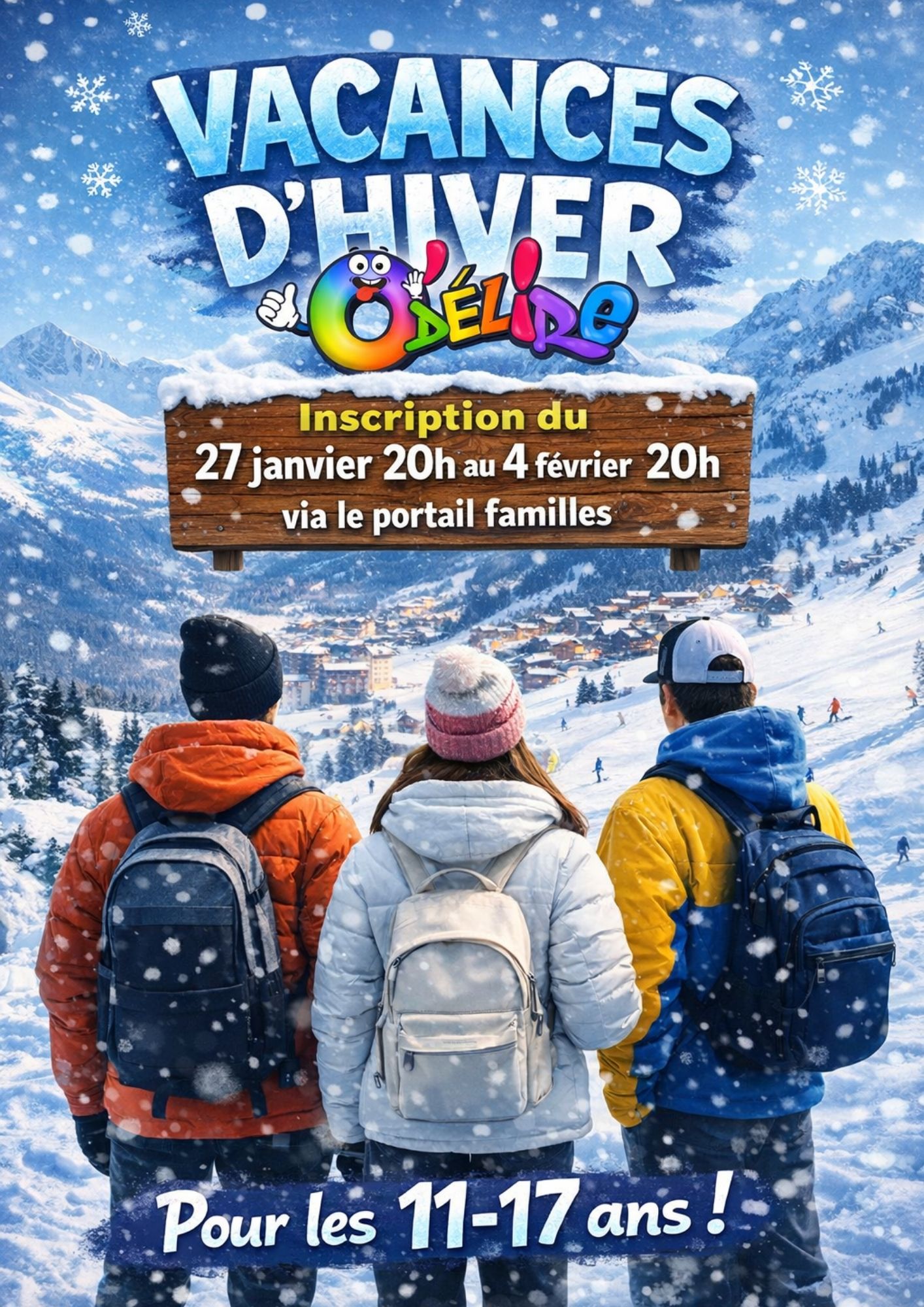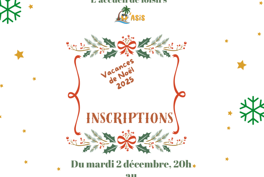 Les inscriptions sont gratuites et se font via le Portail Famille, du mardi 2 décembre à 20h au mercredi 10 décembre à 20h.