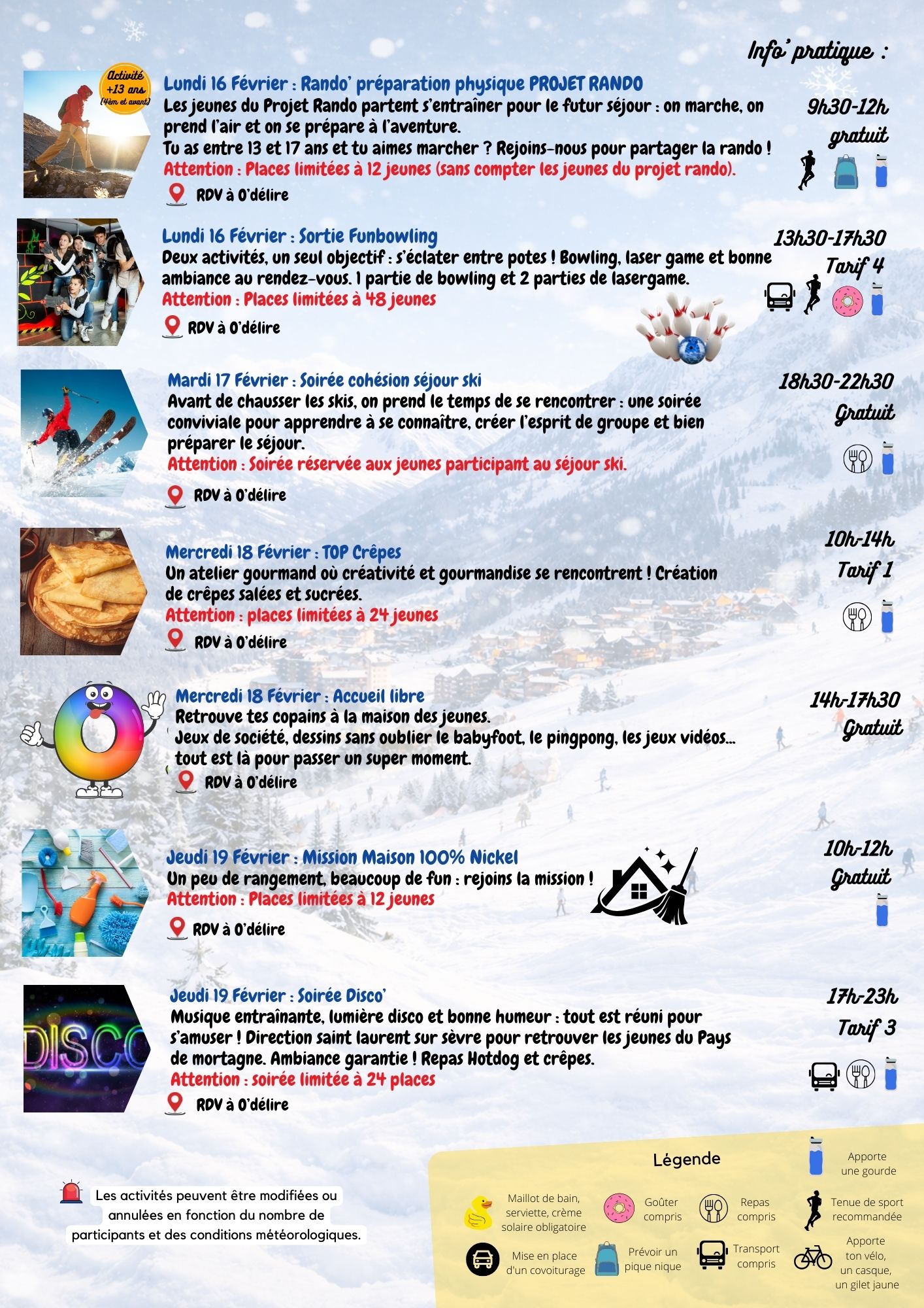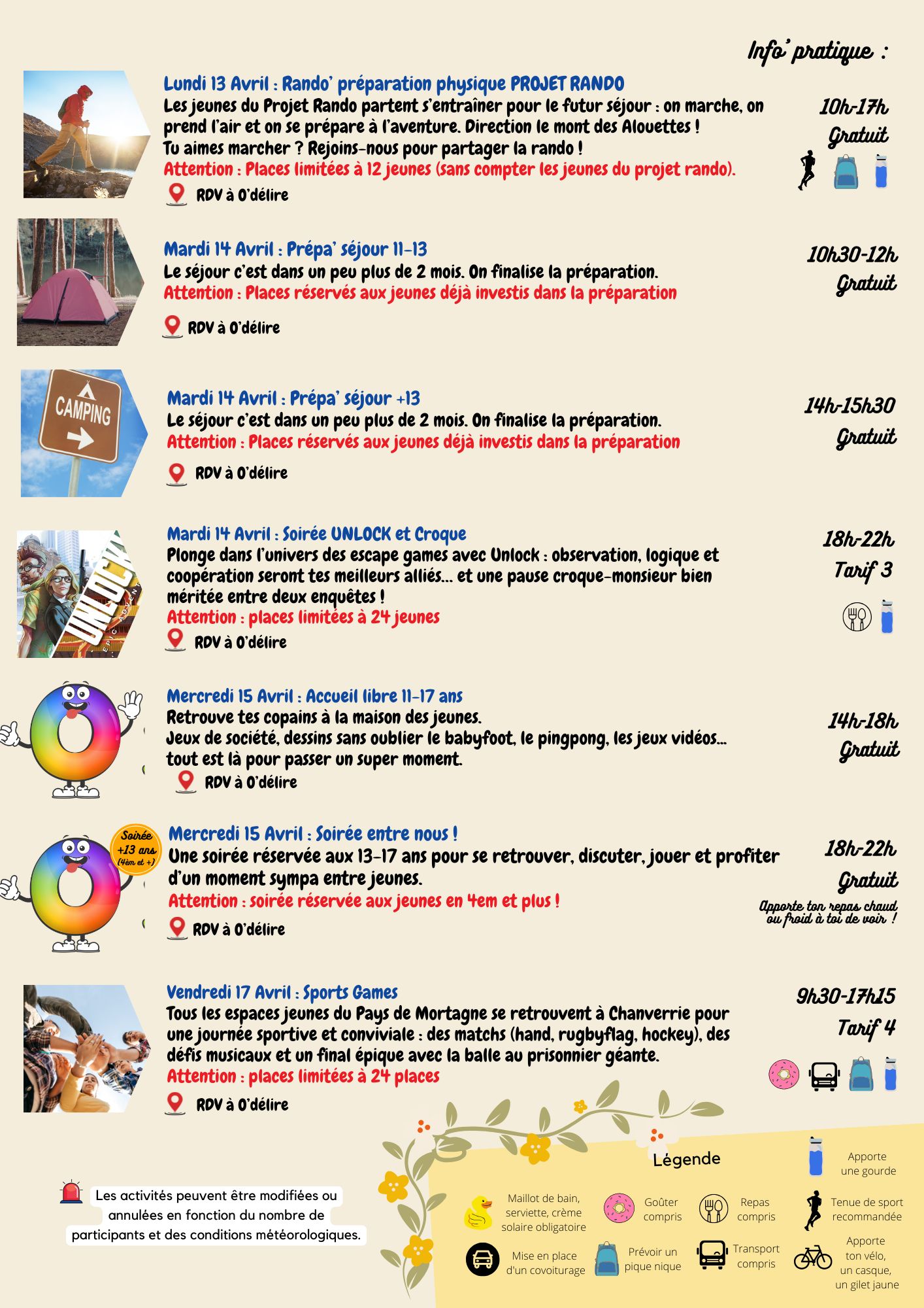 En inscrivant leur jeune à la préparation du séjour, les familles s’engagent à ce qu’il participe à l’ensemble des dates prévues (y compris en février et avril).