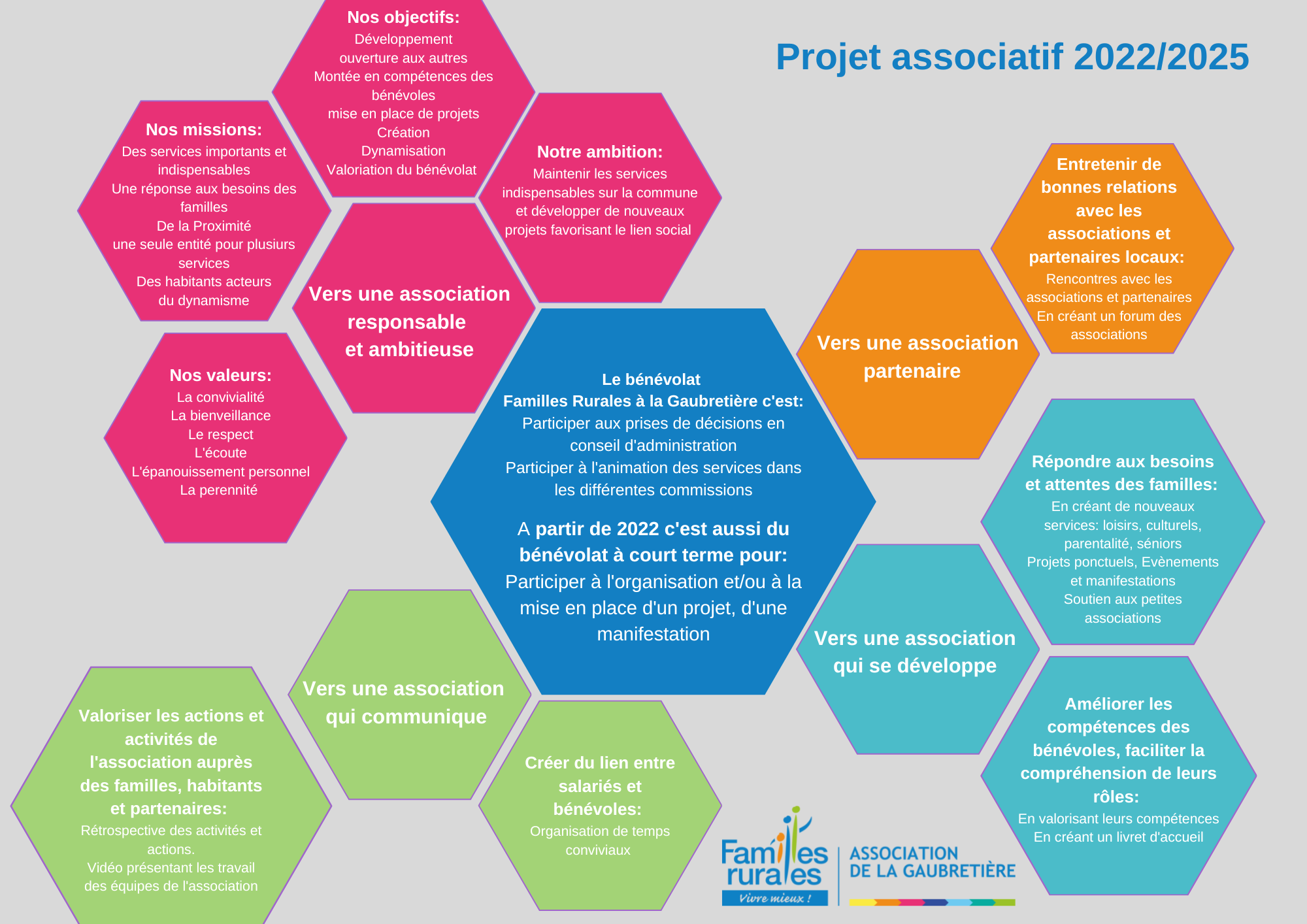 De nos valeurs, a découlé un travail sur notre projet associatif pour 2022/2025 que nous vous présentons ci-dessous.