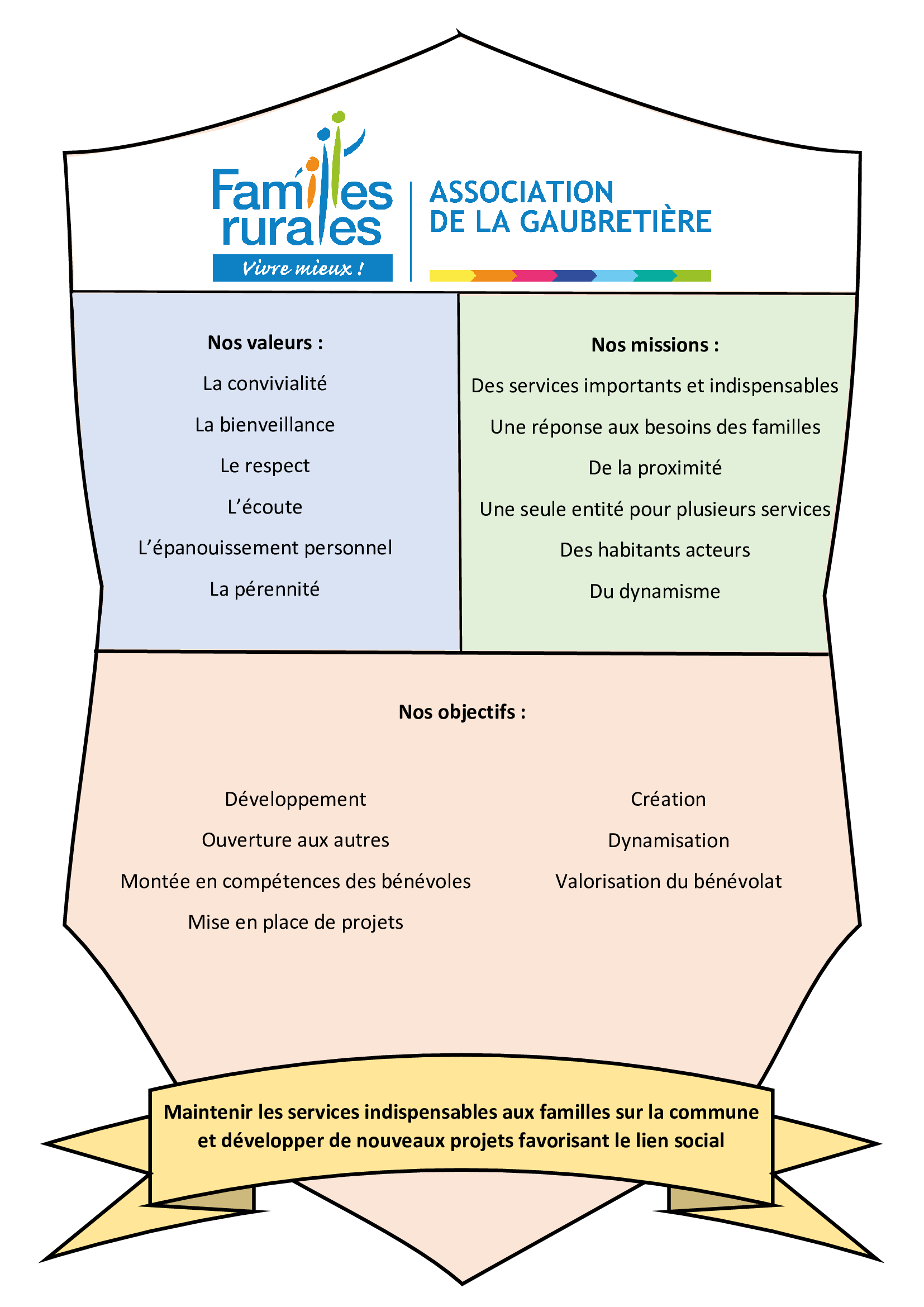 Son premier but étant de : Venir en aide aux familles pour l'achat de biens d'équipement en collaborer à la mise en place de différents services.