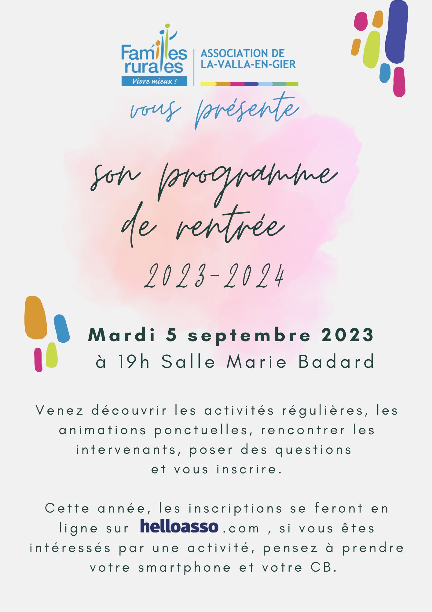 Rendez-vous le 5 septembre à 19h à la Salle Marie Badard.