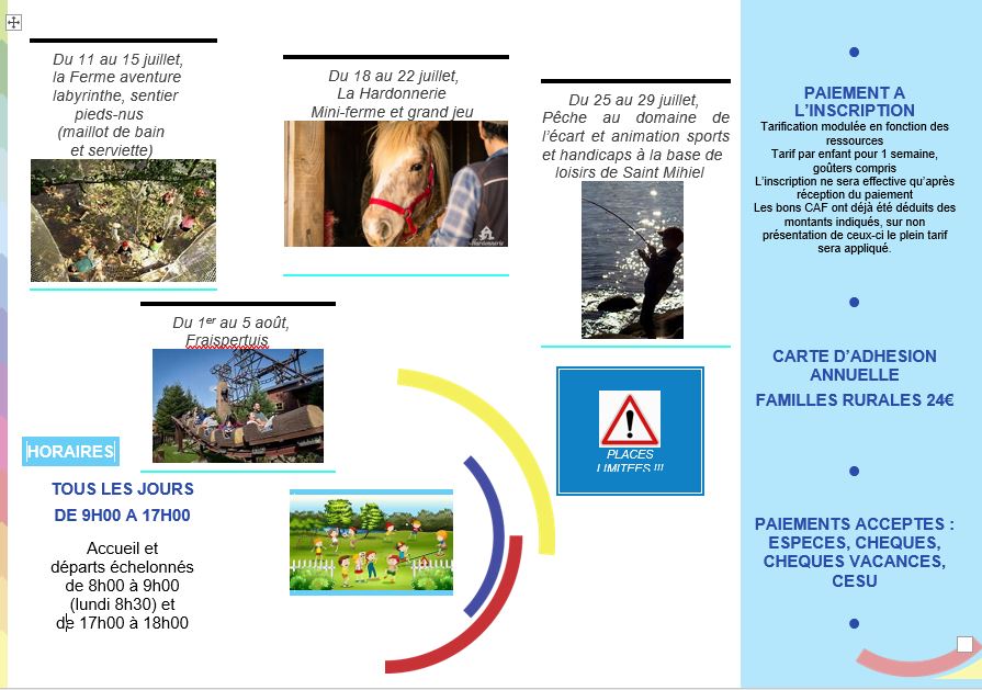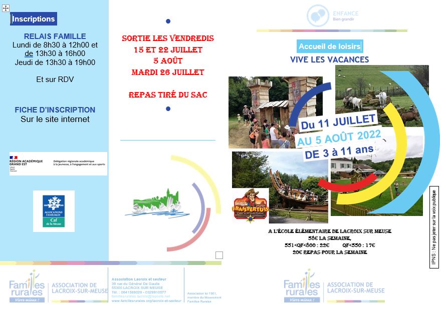 L'association Familles Rurales Lacroix et secteur organise des accueils de loisirs durant les vacances scolaires.