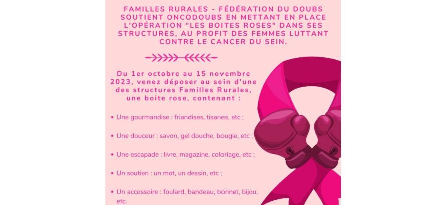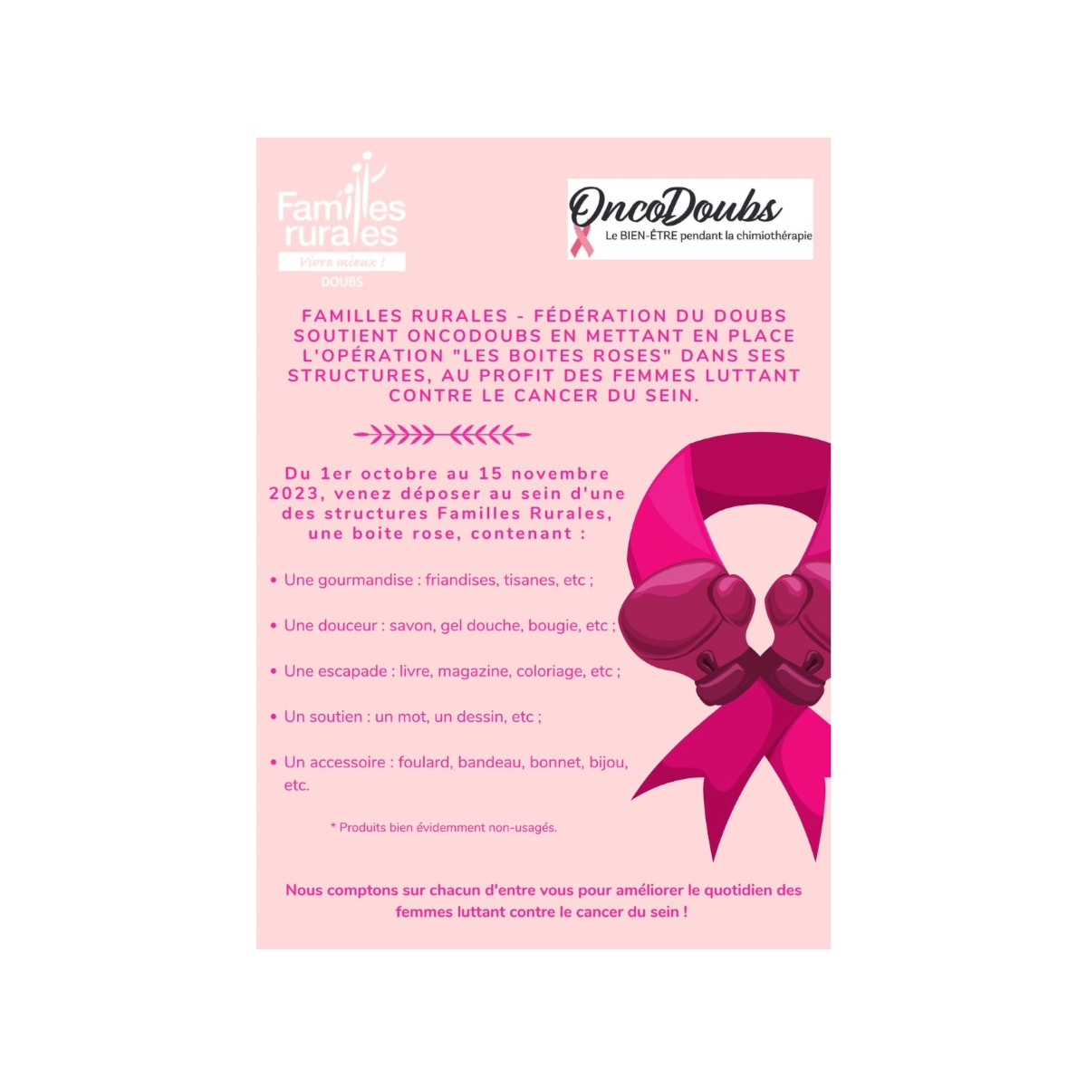 Nous récoltons "les boîtes roses" au profit des femmes luttant contre le cancer du sein.