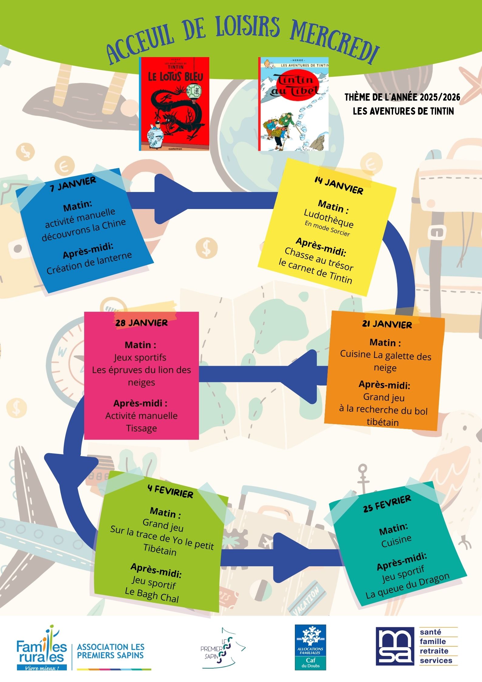 Horaires des mercredis Mercredis Mercredis Anniversaires les aventures de tintin Veuillez trouver ci-dessous le programme des mercredis loisirs à télécharger En savoir plus Programme mercredis loisirs nov. dec.pdf3.9 Mo Programme mercredis loisirs janv. fev..pdf3.02 Mo