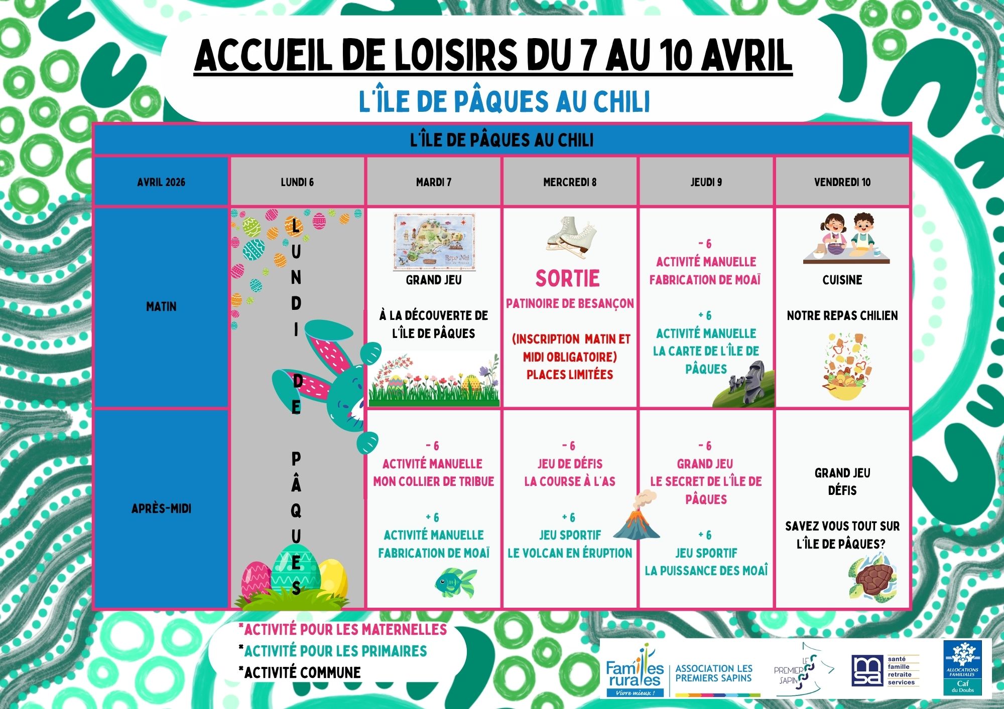 Le mercredi une sortie à la patinoire de Besançon sera organisé le matin.