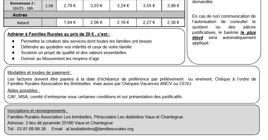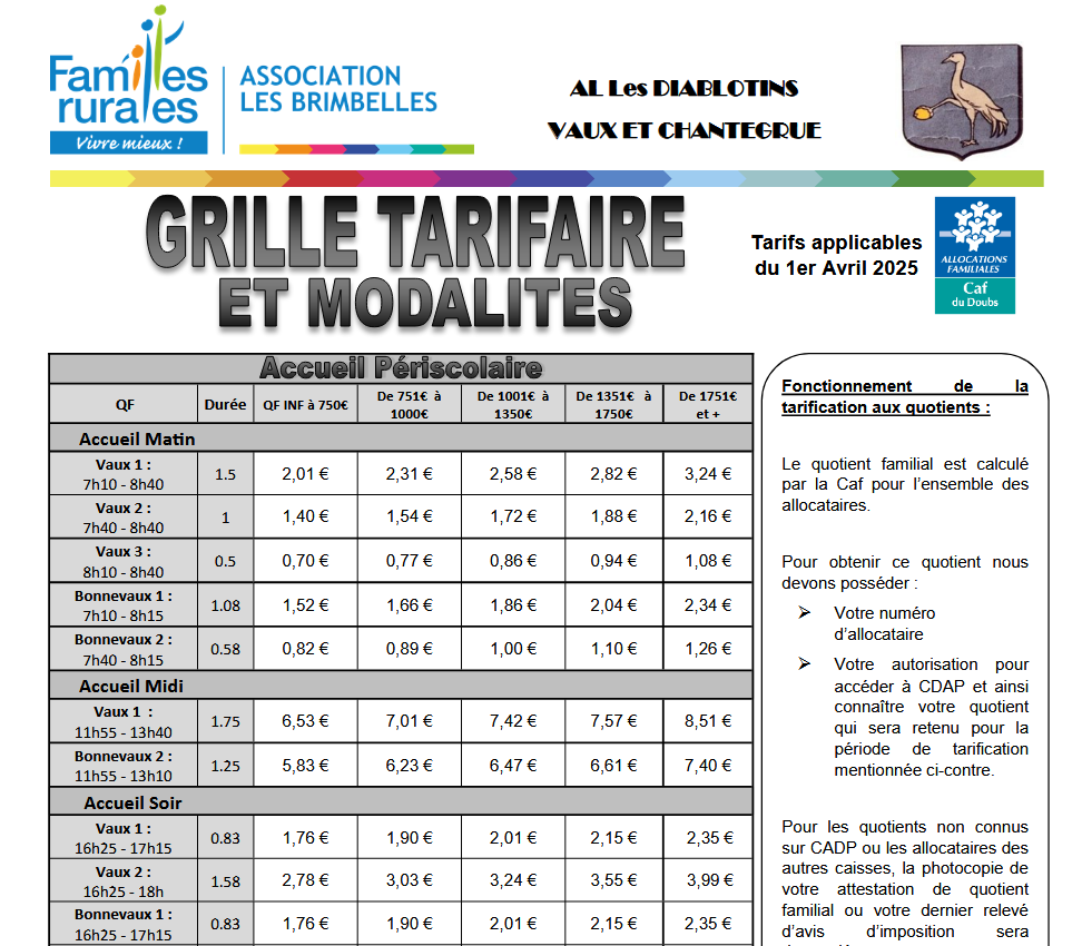 Nouveau tarifs à compter du 1 avril 2025 : En savoir plus Grille-tarifs_01-04-2025 ASSO Les brimbelles AL VAUX.pdf542.33 Ko