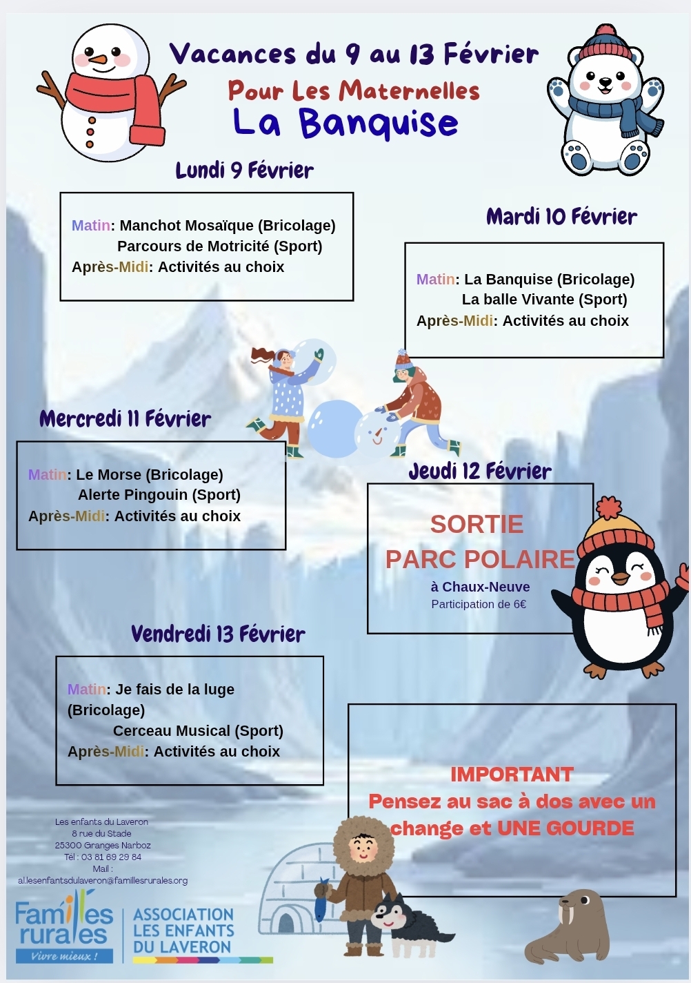 Programmes des vacances d'hiver du 9 au 13 Février 2026