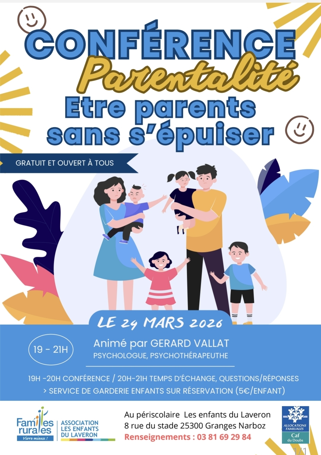 "Être parents sans s'épuiser" , animée par Gerard Vallat, psychologue et psychothérapeute.